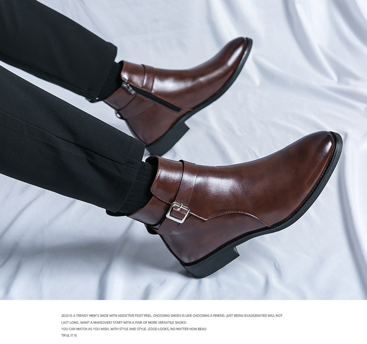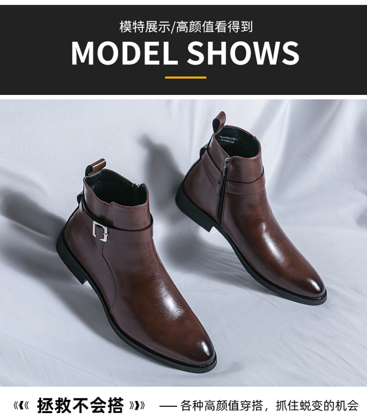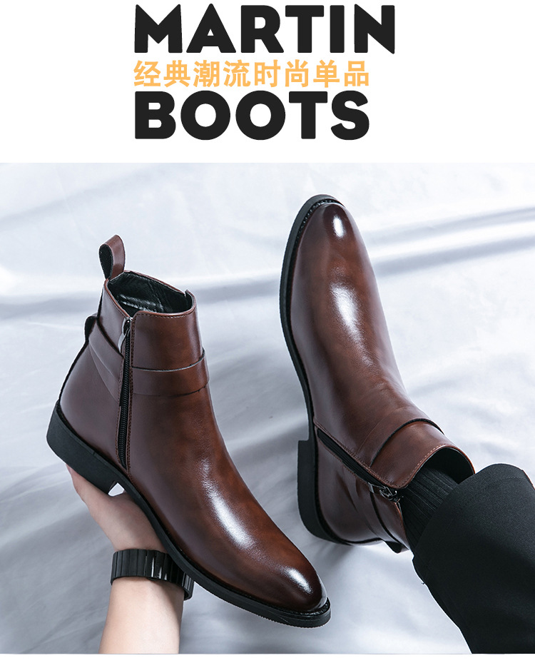 국경 간 독점 플러스 사이즈 첼시 부츠 남성 영국 스타일의 세련된 하이 탑 가죽 신발 사이드 지퍼 미드 탑 마틴 부츠 신사스토어 가기