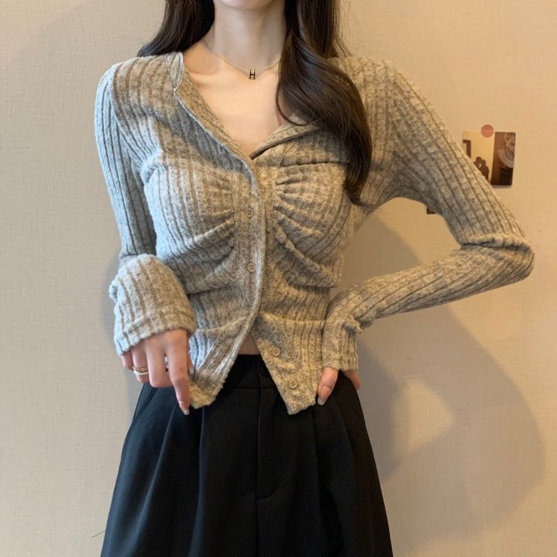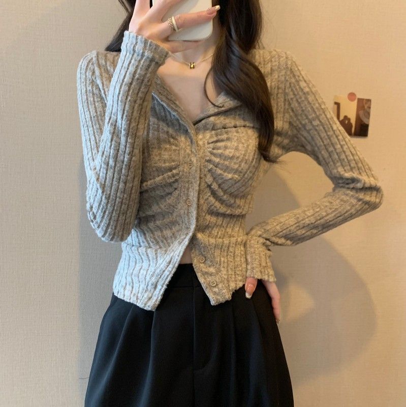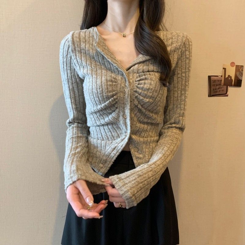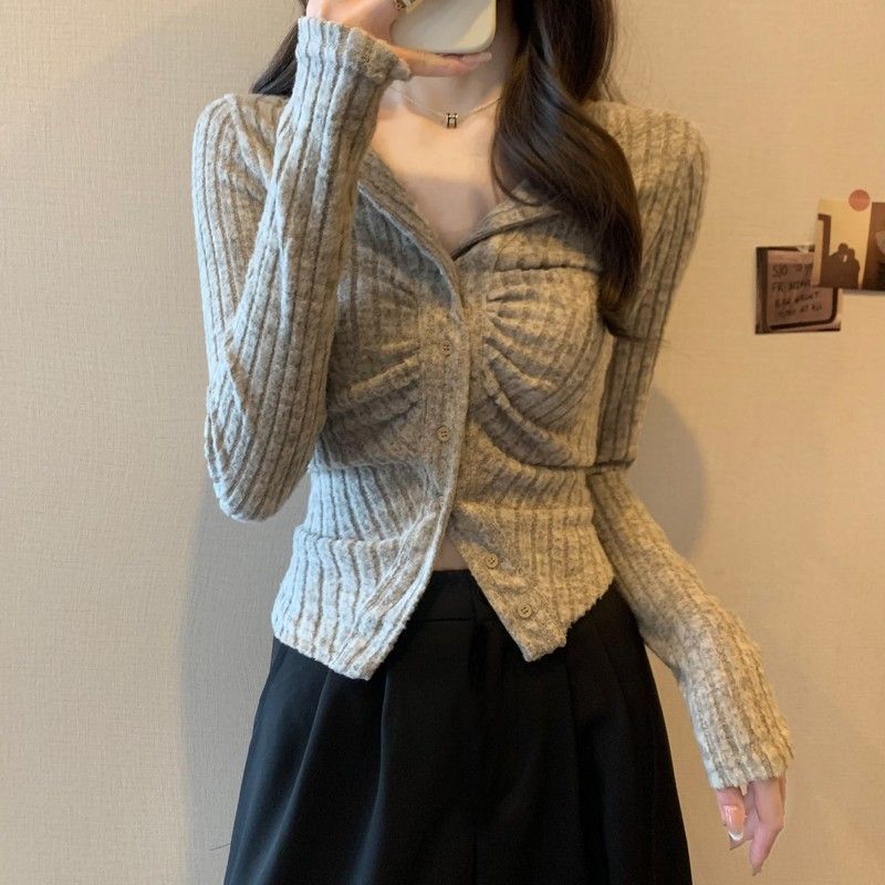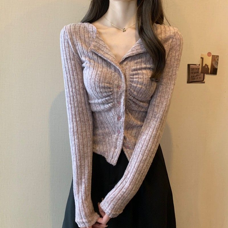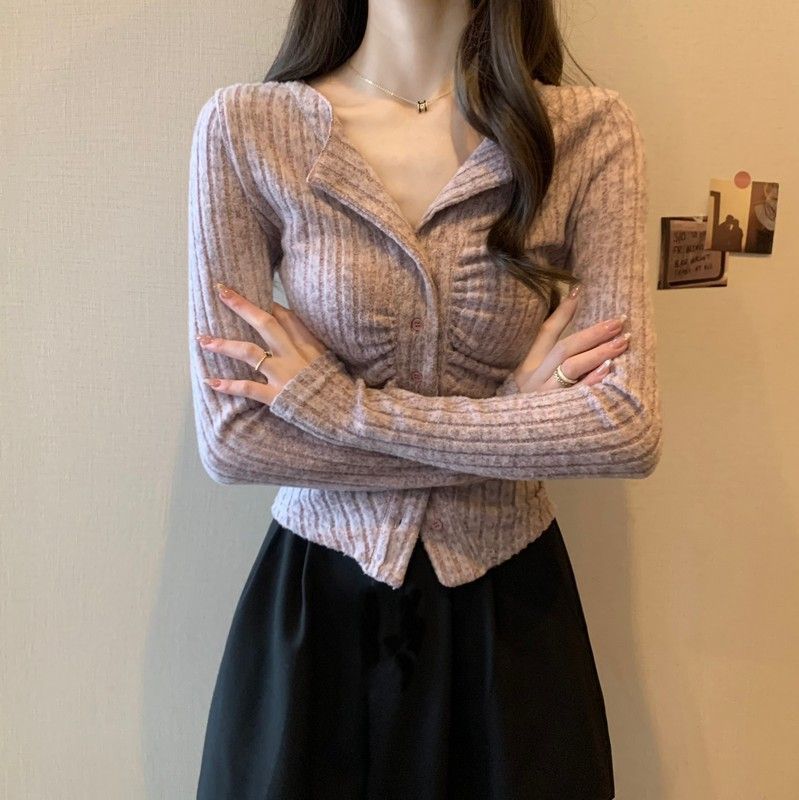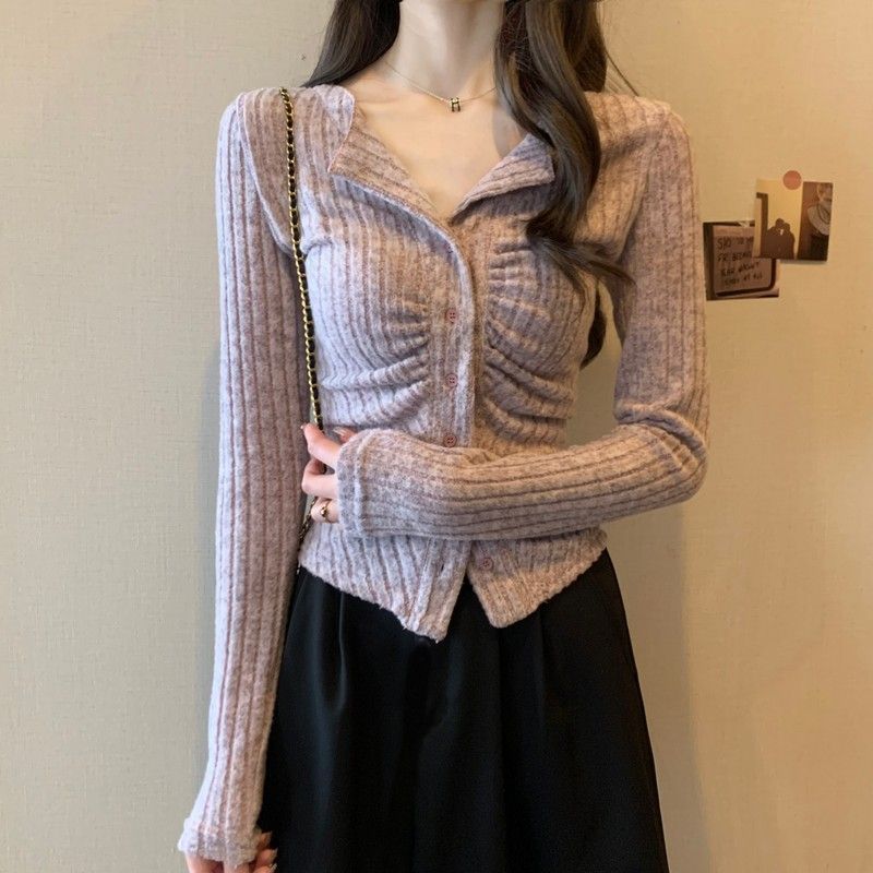 프렌치 슬림핏 라펠 플리츠 불규칙 슬림핏 슬림 여성용 가을 베이스 셔츠 내부 긴팔 틈새 탑스토어 가기