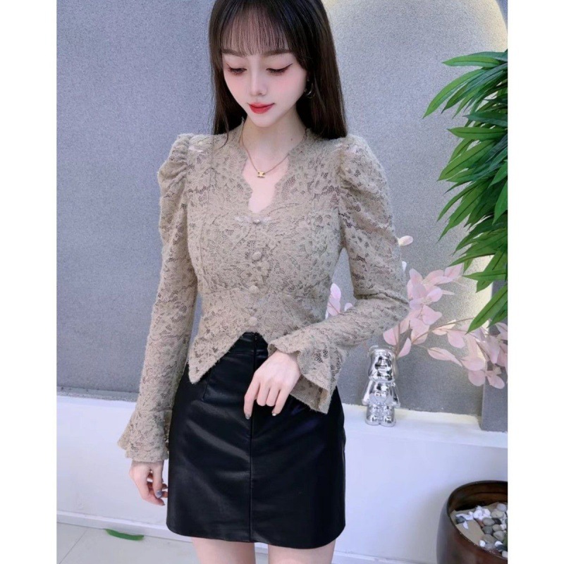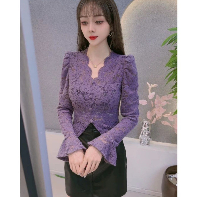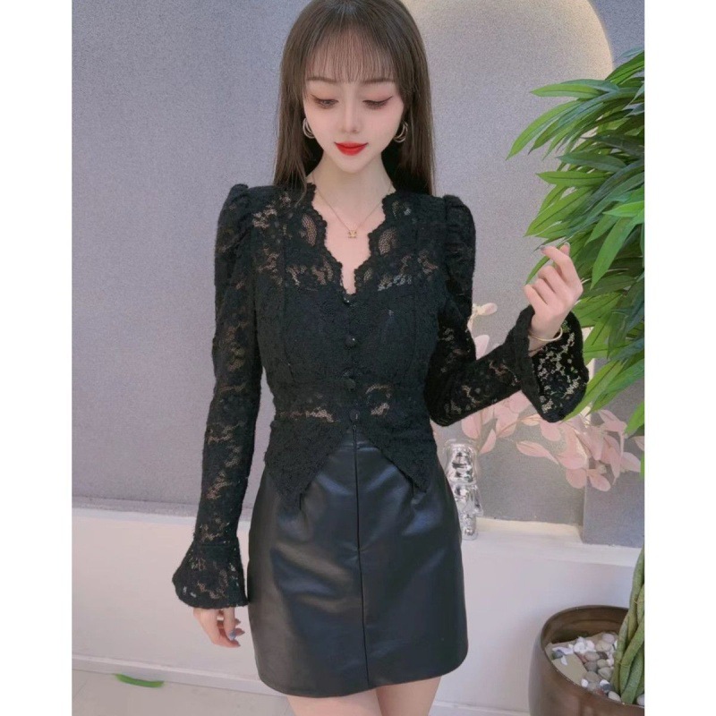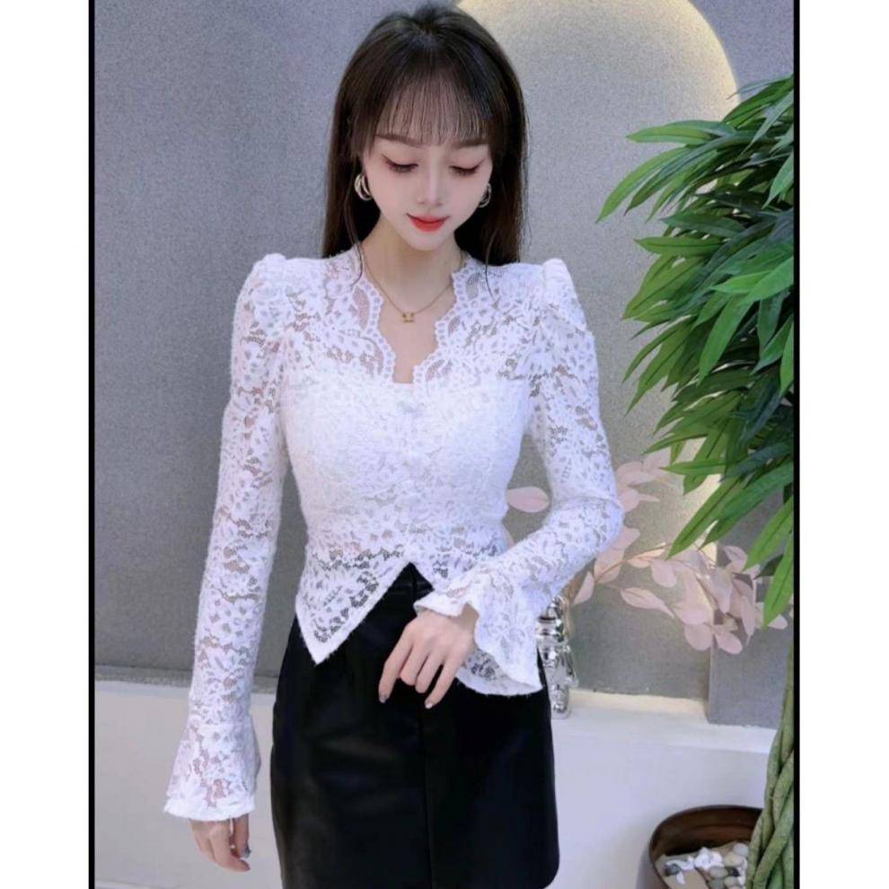 여성용 긴팔 넥 폴로 레이스 베이스 셔츠 2023 가을과 겨울 새로운 스타일 독특한 내부 셔츠 트렌디스토어 가기