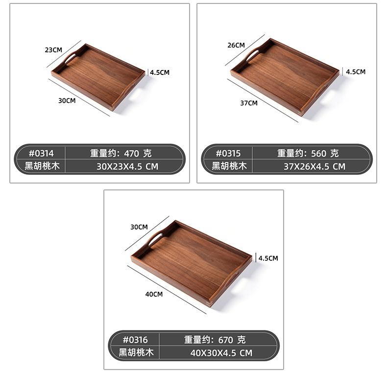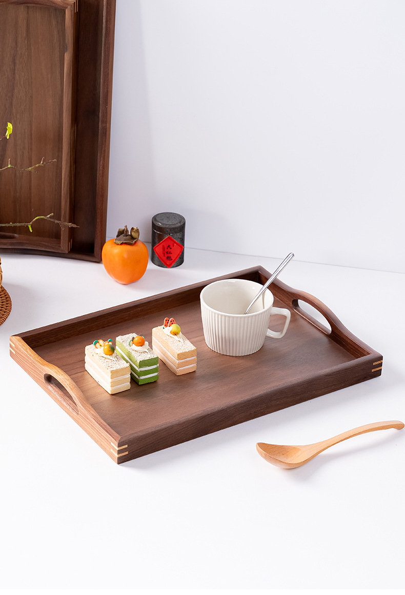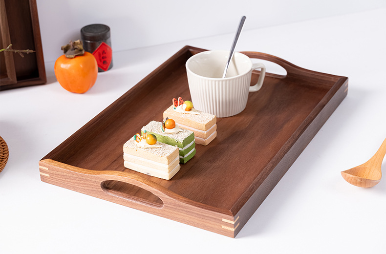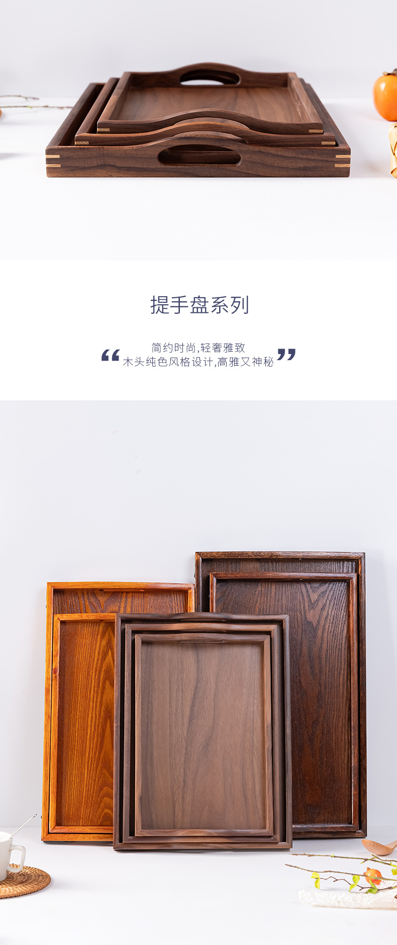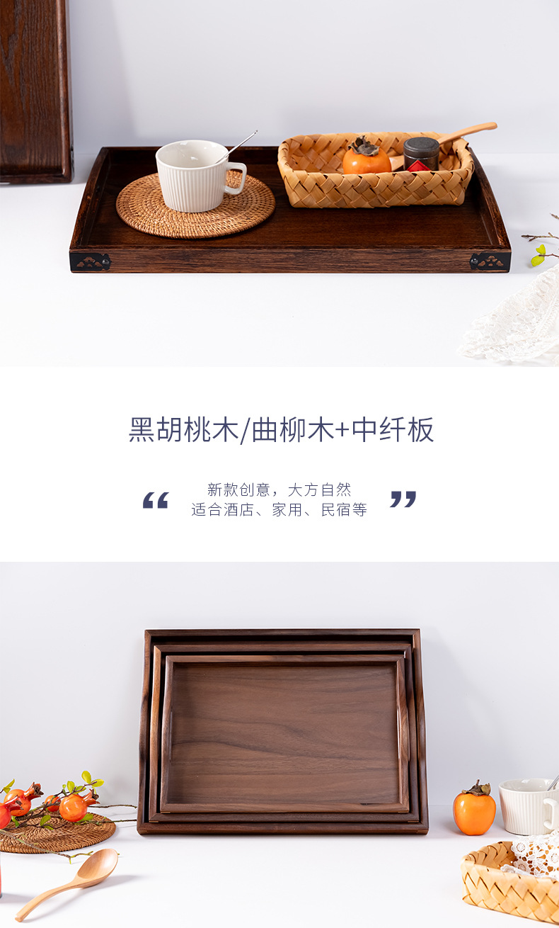 검은 호두 핸드 헬드 플레이트 가정용 나무 디너 플레이트 스퀘어 트레이 중국 차 컵 티 트레이 캔디 과일 플레이트스토어 가기