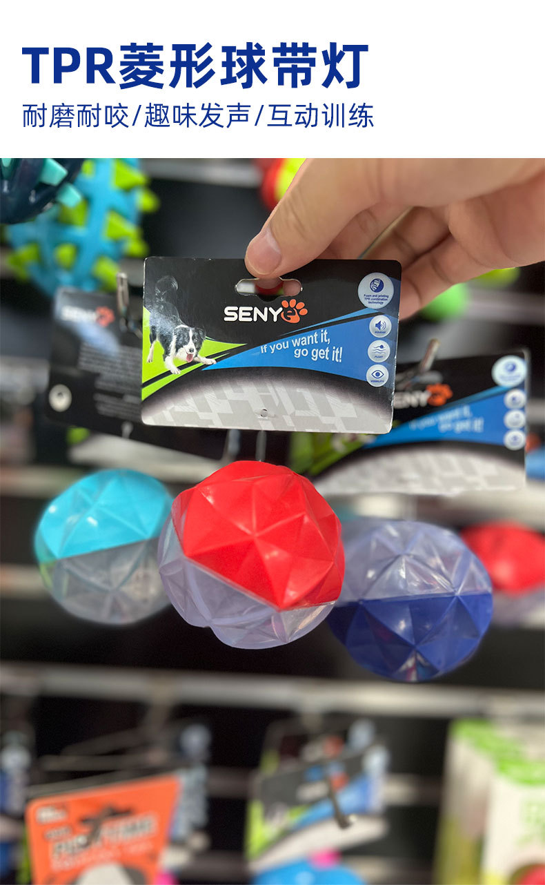 애완 동물 장난감 공 물린 어금니 물기 방지 TPR 다이아몬드 공 가벼운 놀이 블루 독 장난감 공스토어 가기