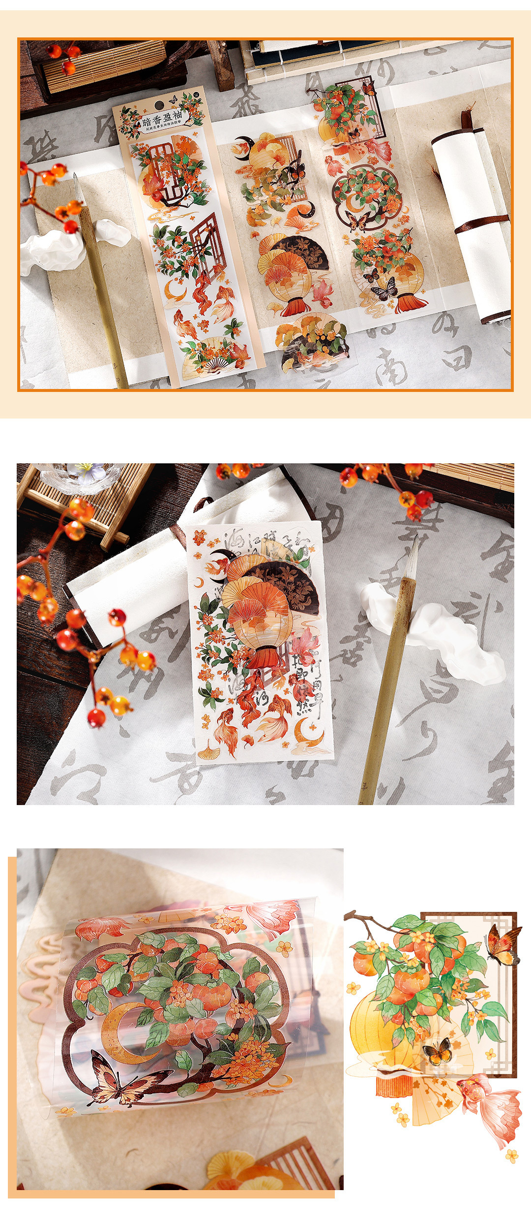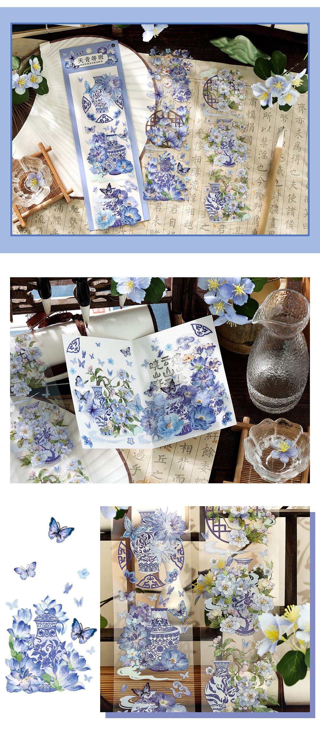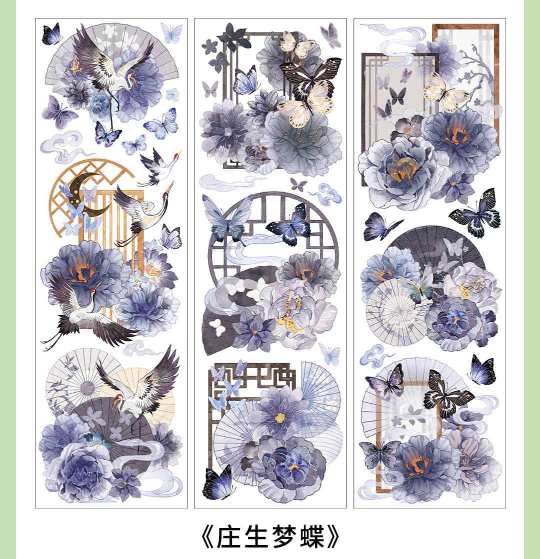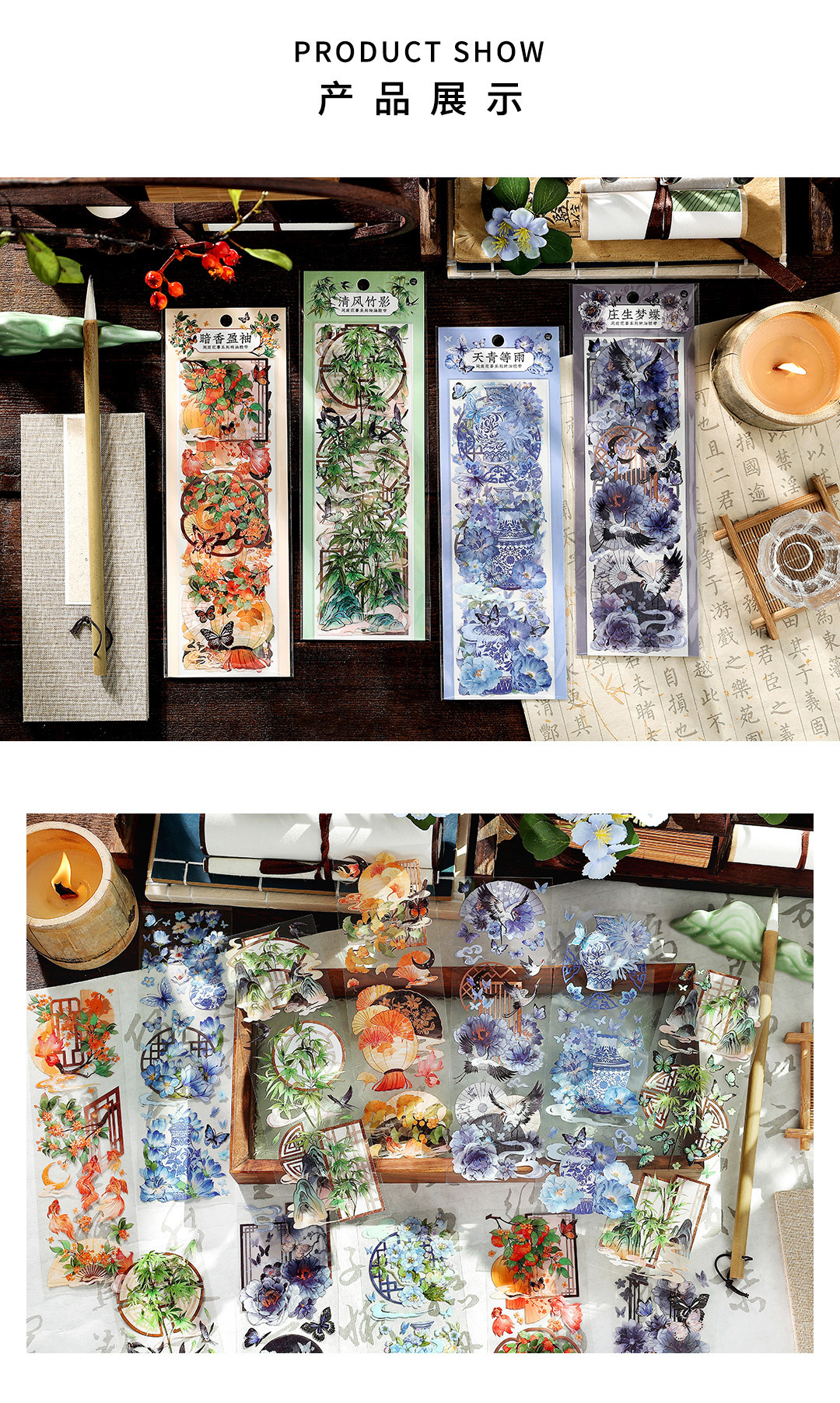 인강. MePET 특수 오일 스트립 접착 테이프 레저 코트 꽃 시리즈 골동품 식물 나비 장식 손 계정 포스트스토어 가기