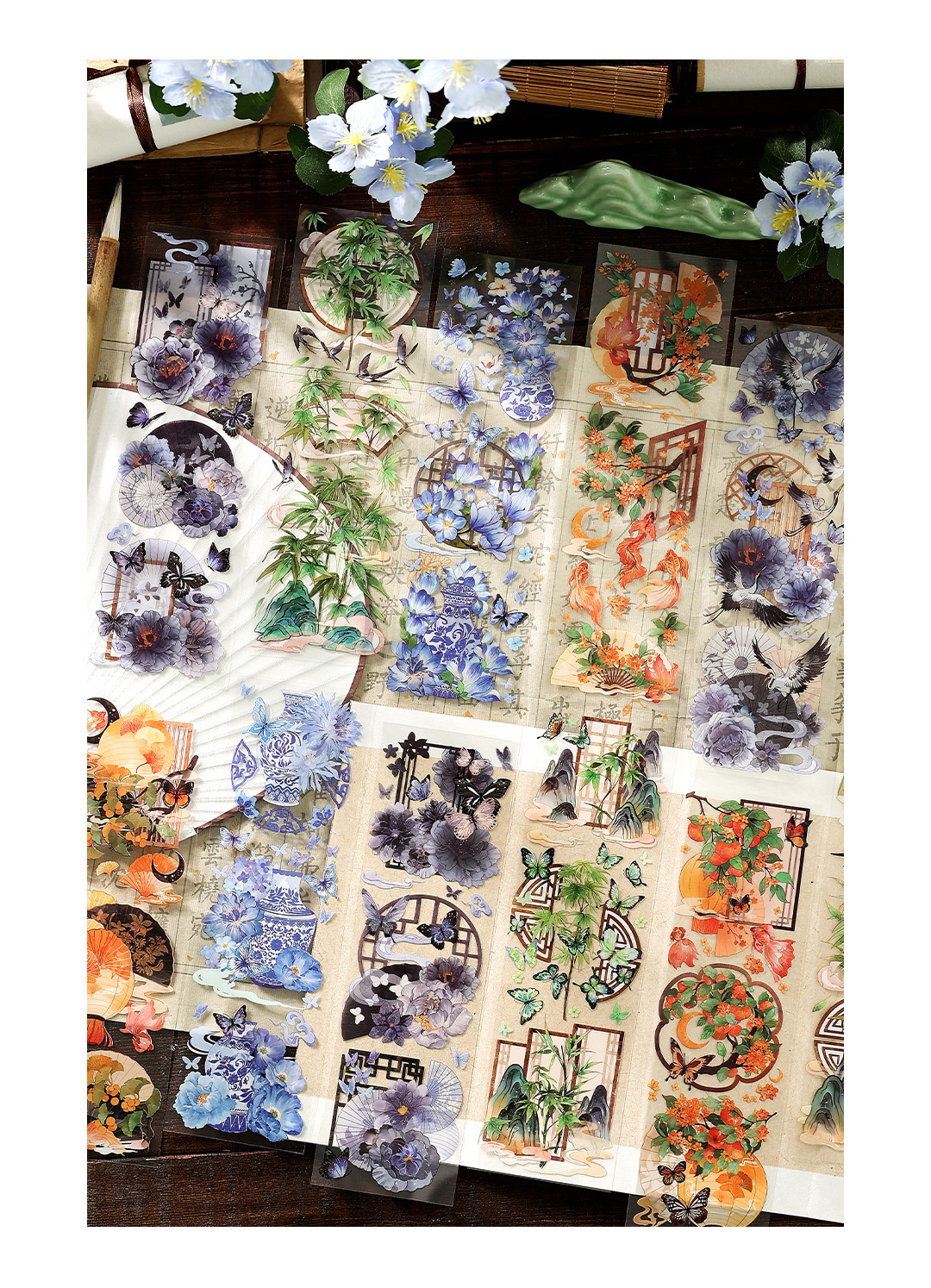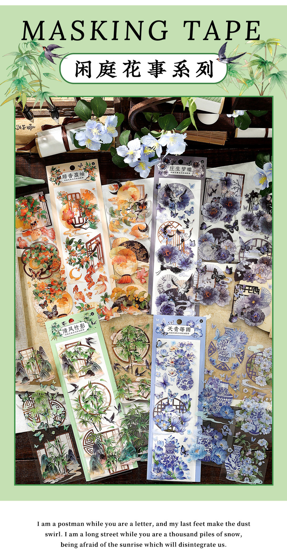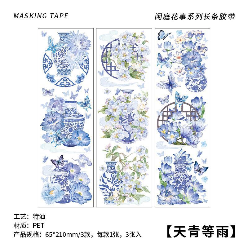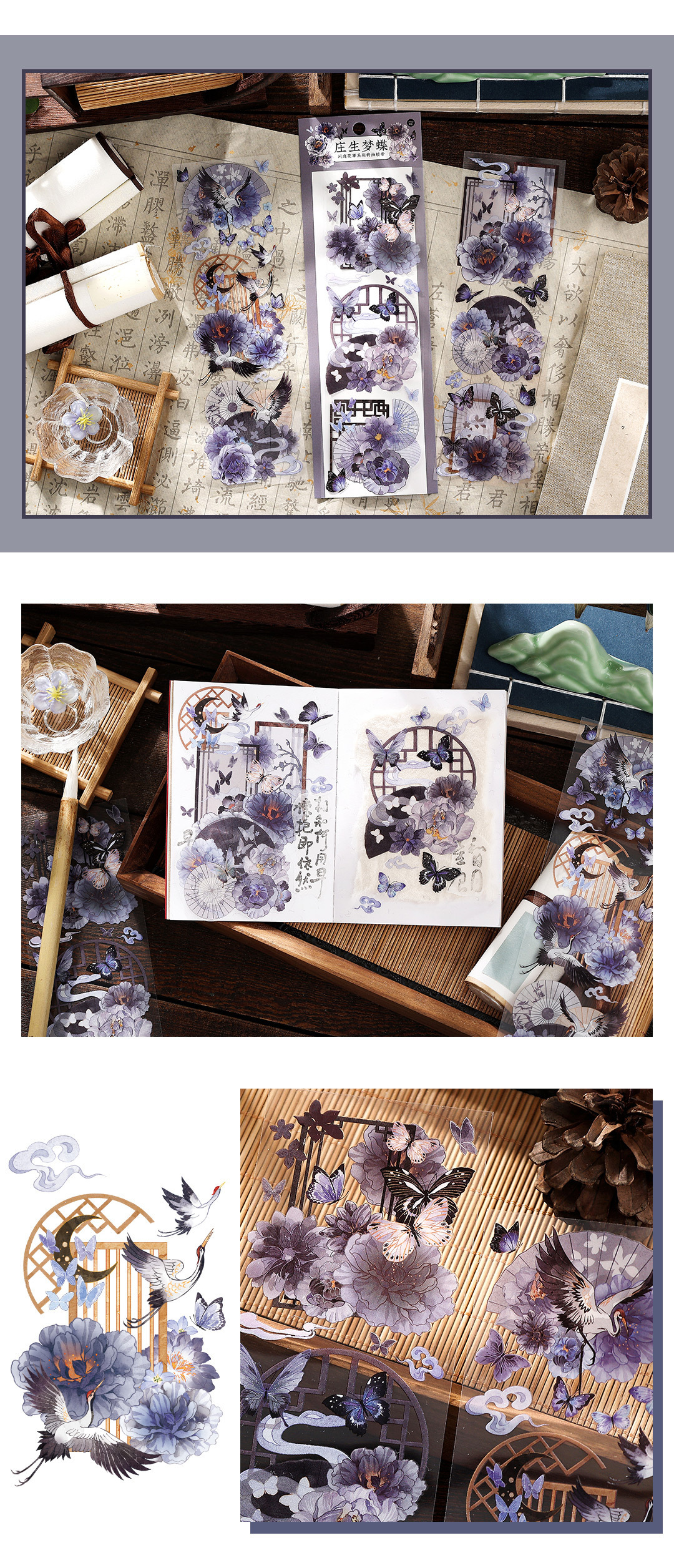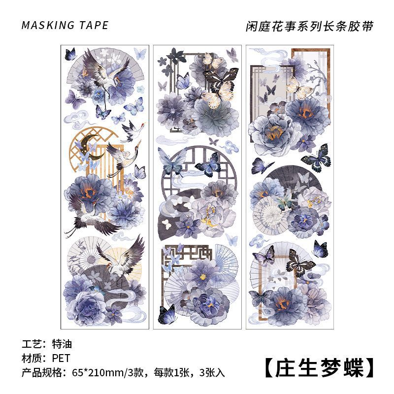 인강. MePET 특수 오일 스트립 접착 테이프 레저 코트 꽃 시리즈 골동품 식물 나비 장식 손 계정 포스트