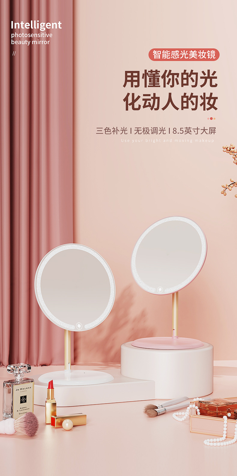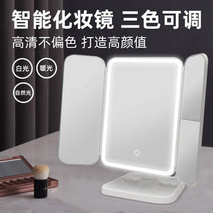 조명이 있는 이중축 화장 거울, 스마트 LED 뷰티 화장 거울, 조명이 있는 탁상용 접이식 거울, 조도 조절 가능스토어 가기