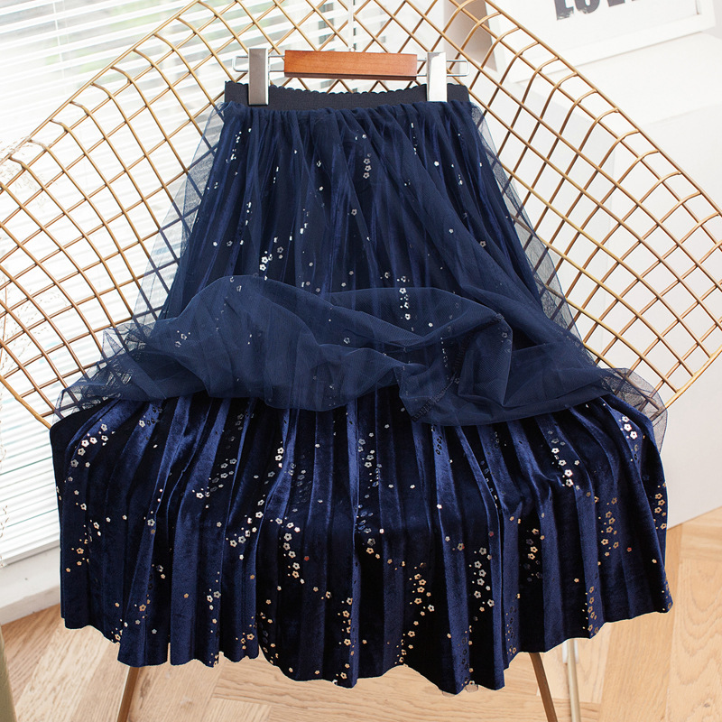 가을과 겨울 벨벳 폴드 아동복 대형 및 중형 어린이를위한 따뜻한 스커트 A 자형 모든 매치 우아한 대형 스커트 여아 하의스토어 가기