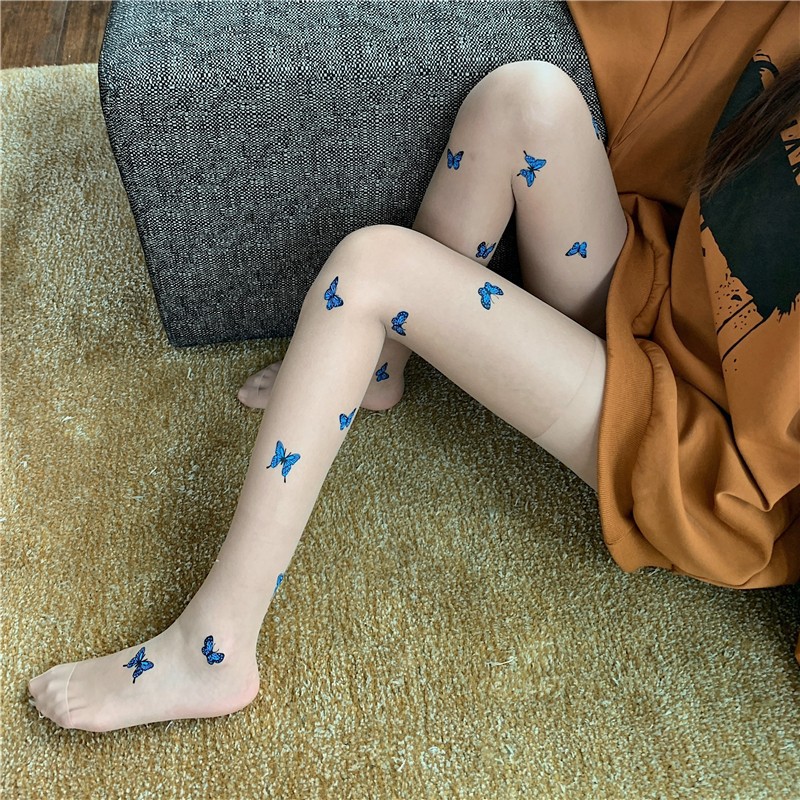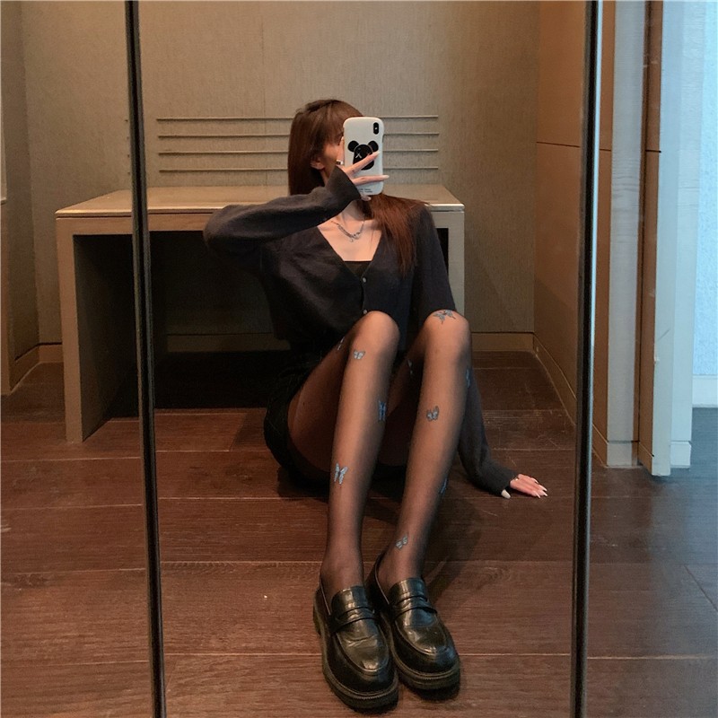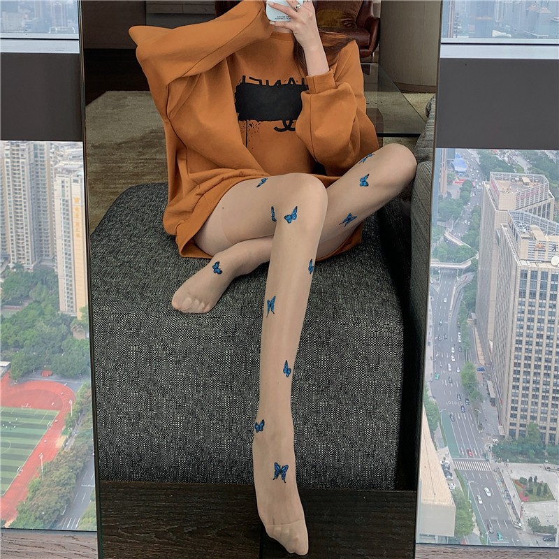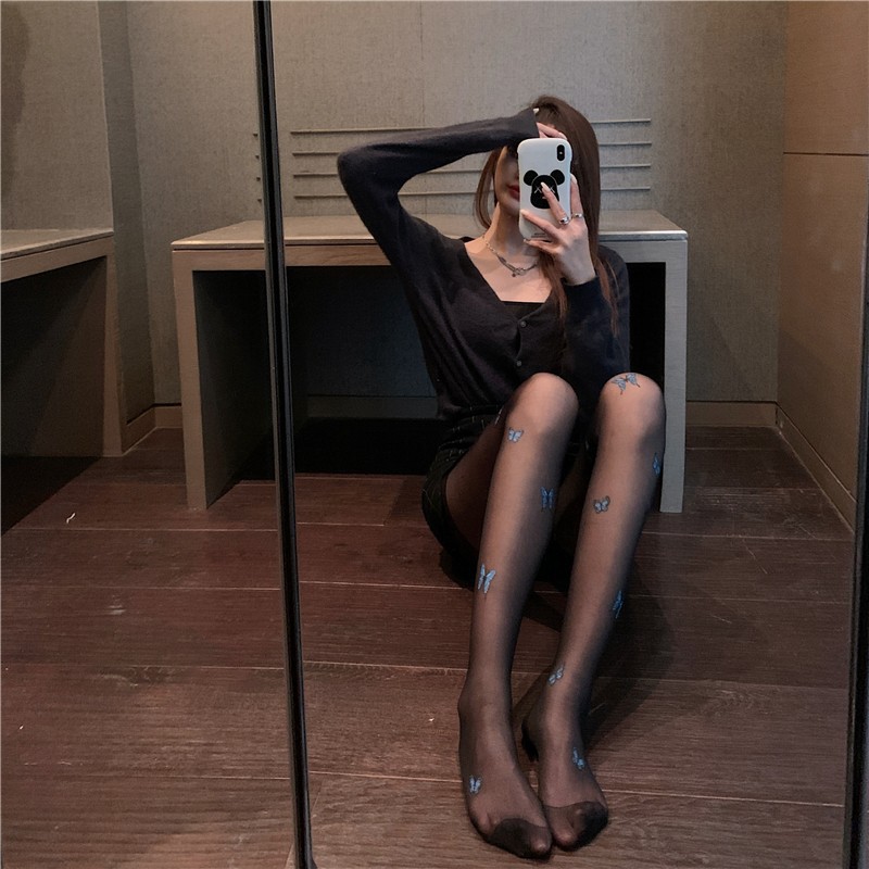 블랙 실크 스타킹 여성의 섹시한 봄과 가을 얇은 나비 인쇄 편지 유행 2022 새로운 인터넷 연예인 흰색 양말스토어 가기