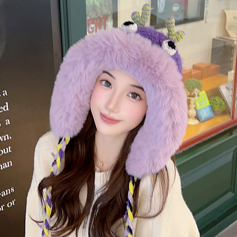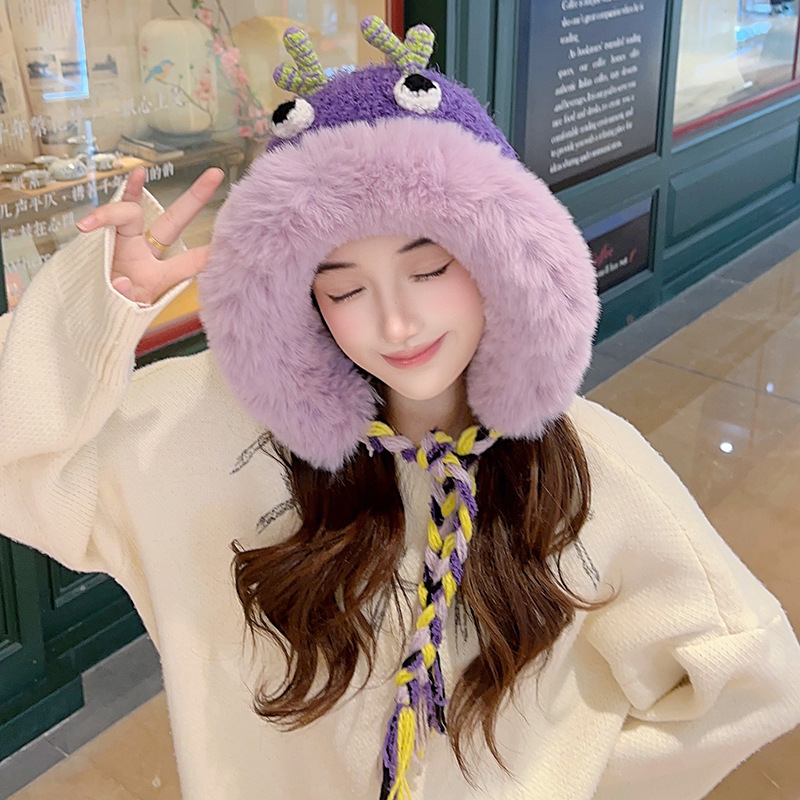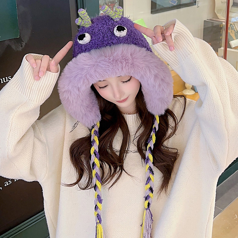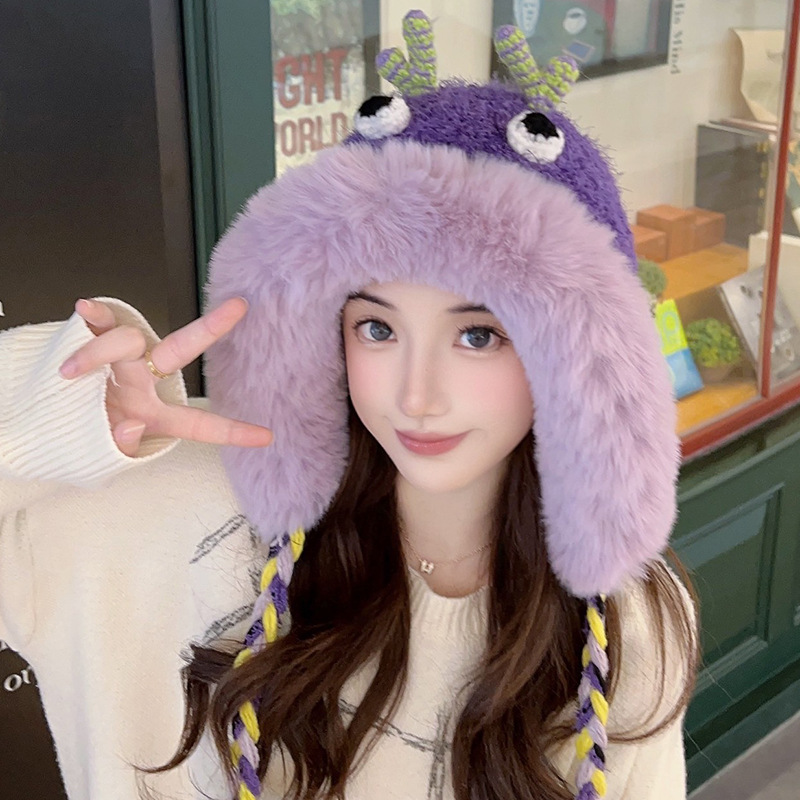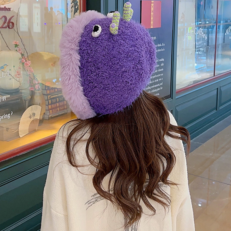만화 귀여운 재미있는 봉제 모자 가을과 겨울 모든 경기 뿔 괴물 모자 방한 따뜻한 Baotou 귀 보호 모자 풀오버 모자스토어 가기