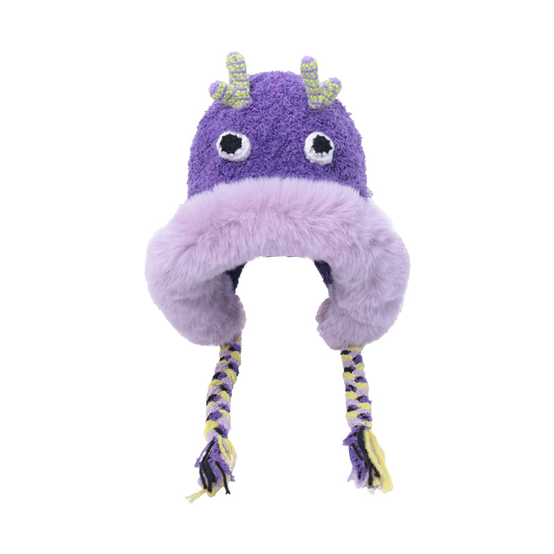 만화 귀여운 재미있는 봉제 모자 가을과 겨울 모든 경기 뿔 괴물 모자 방한 따뜻한 Baotou 귀 보호 모자 풀오버 모자