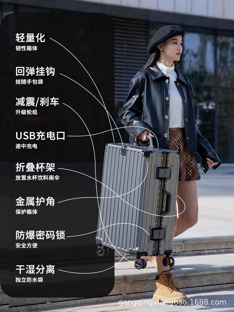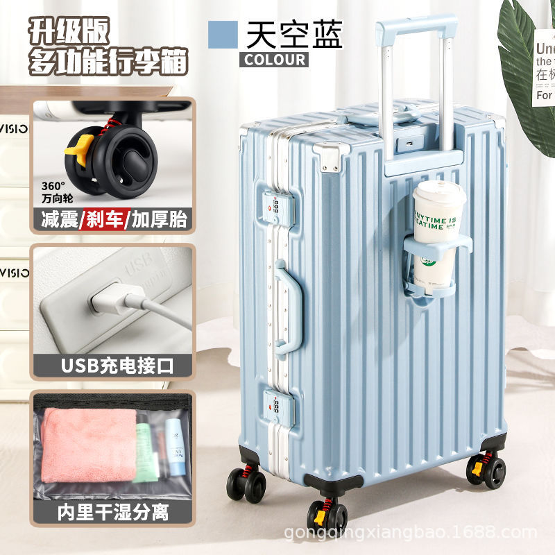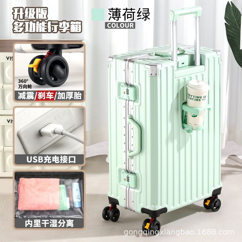 다기능 수하물 케이스 새로운 스타일 남성용 여행 가방 여성용 암호 상자 학생 USB 컵 홀더 두꺼운 암호 상자스토어 가기
