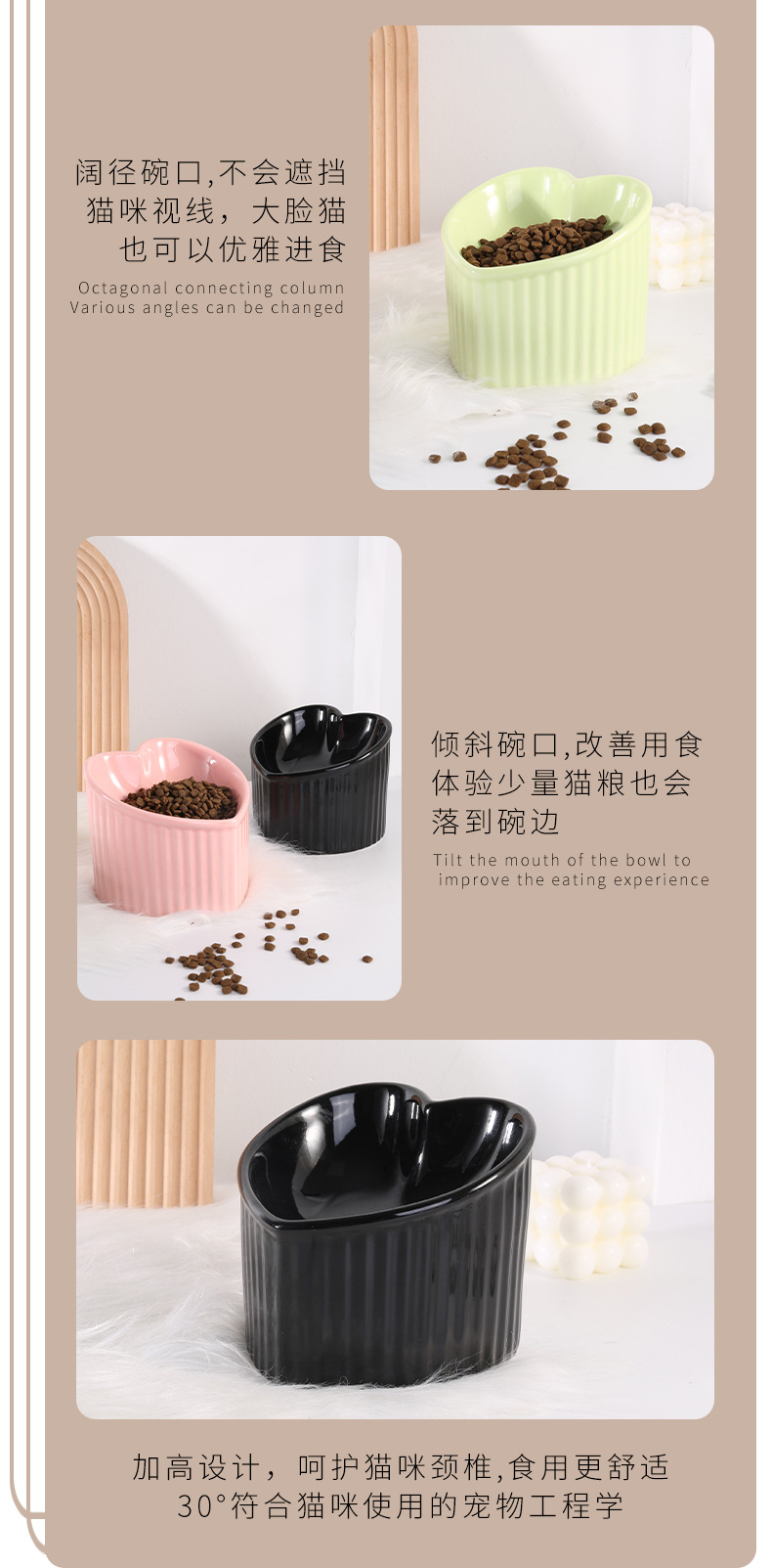 애완 동물 고양이 개 높은 다리 사랑 대각선 그릇 안티 노크 음주 고양이 먹이 개 사료 그릇 애완 동물 도자기 그릇 고양이 그릇스토어 가기