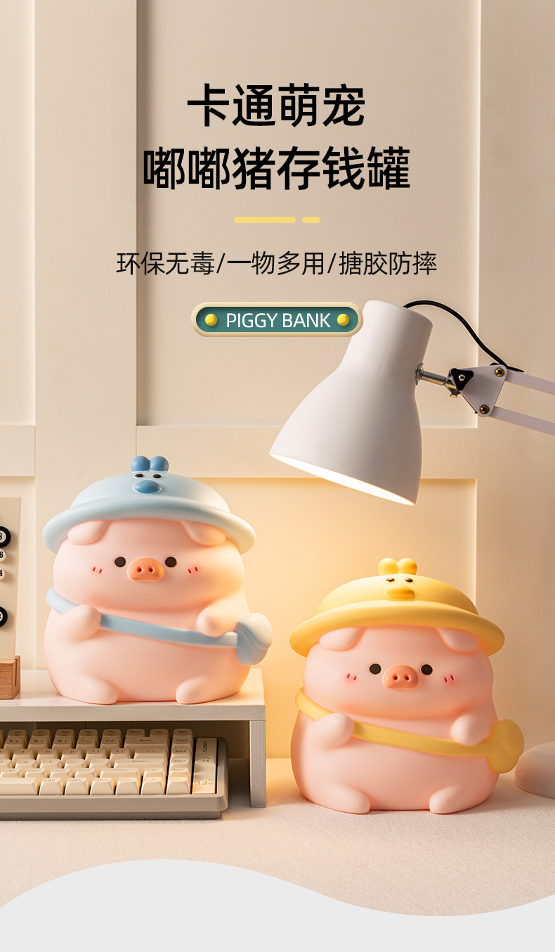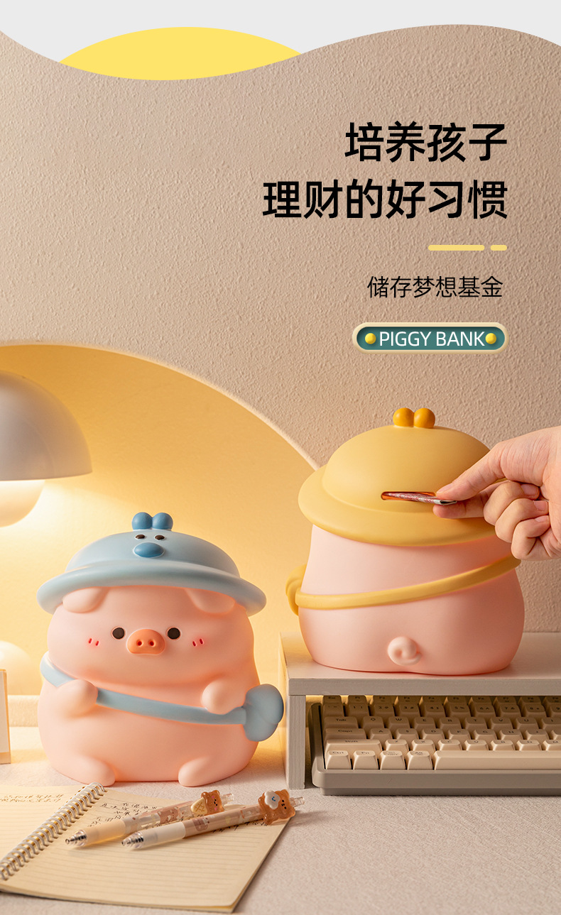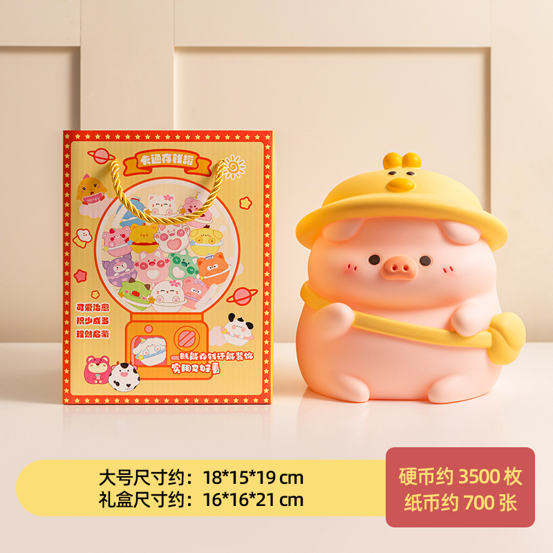 Dudu 돼지 돼지 저금통 어린이 만화 장난감 인형 비닐 낙하 방지 돼지 저금통 대용량은 바람직한 선물을 저장할 수 있습니다