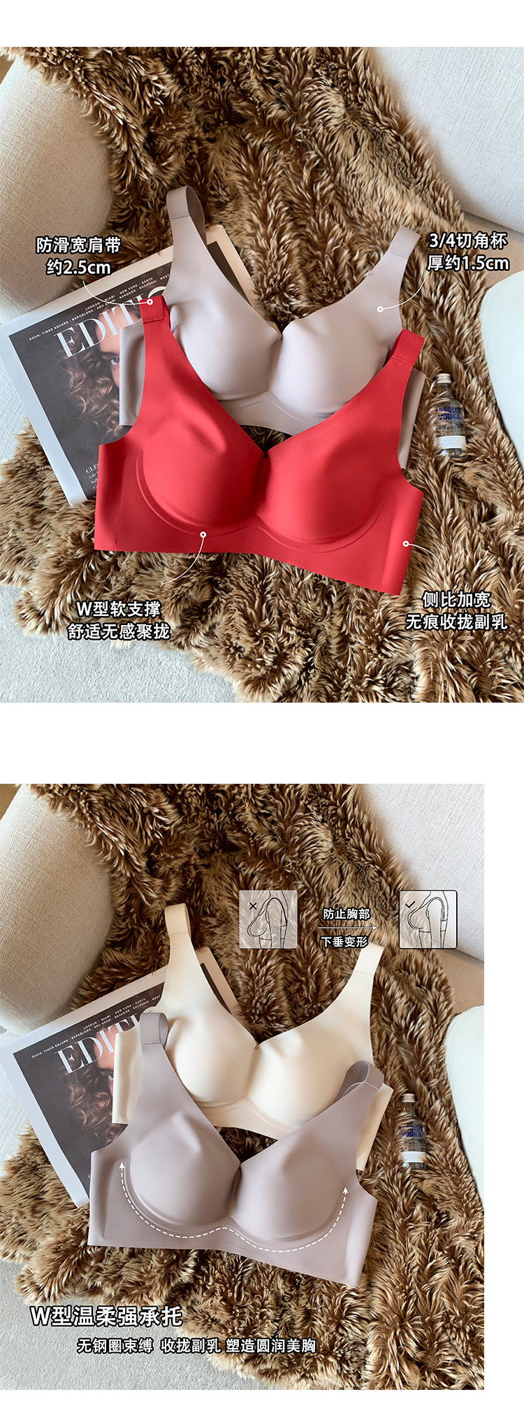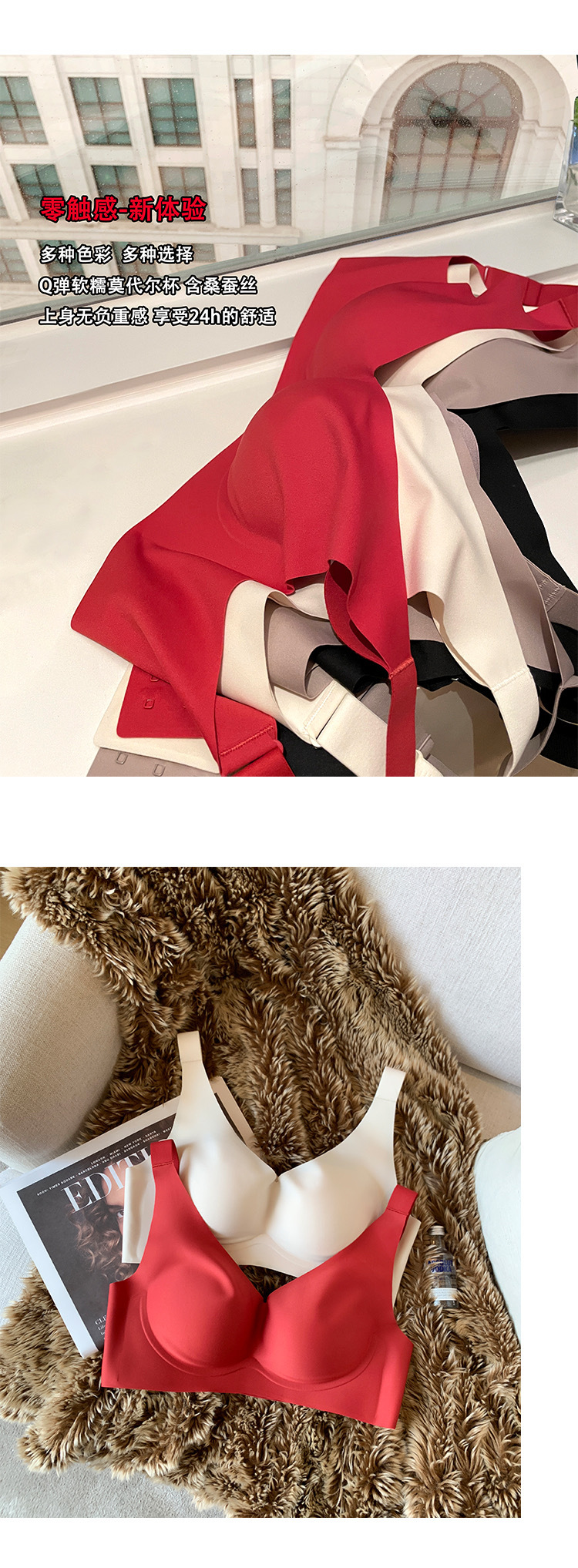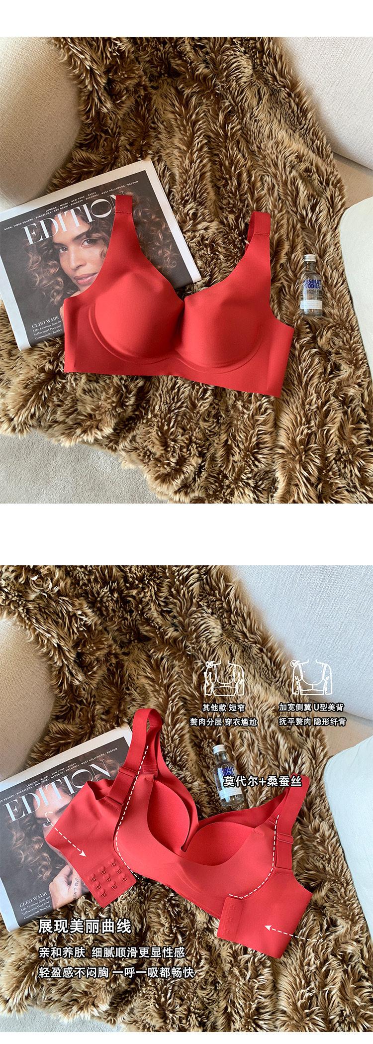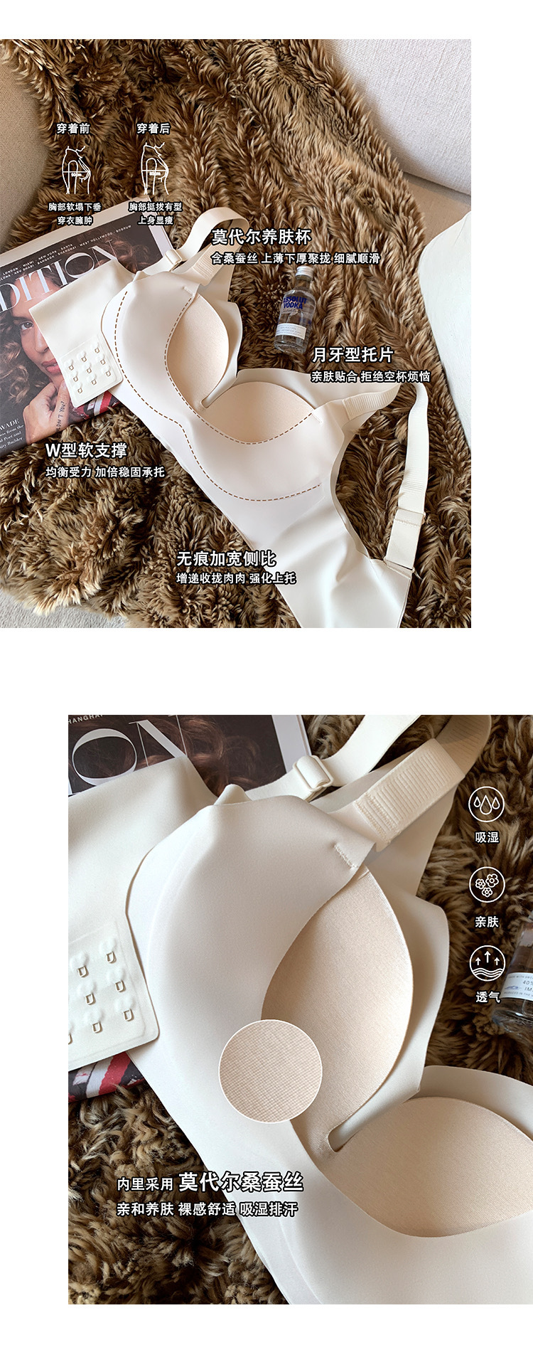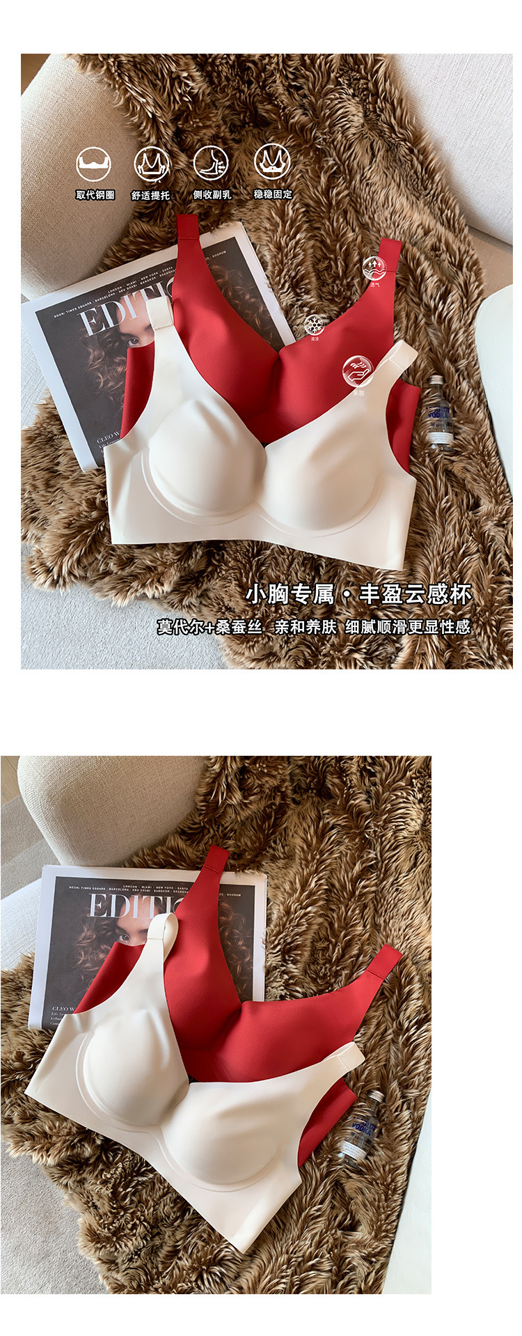 JCSILK 뽕나무 실크 작은 가슴 두꺼운 푸시 업 브래지어 접힌 액세서리 우유 고정 컵 원활한 광택 속옷