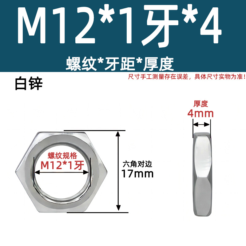 • 육각형 너트 미세 치아 M12 * 1*7 색 아연