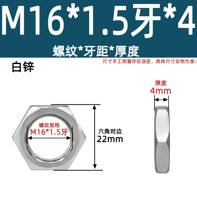 • 육각형 너트 미세 치아 M16 * 1.5*8 색 아연