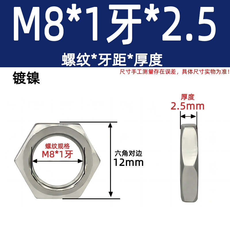 • 육각형 너트 미세 치아 M12 * 1*7 니켈 도금 (소금 스프레이를 통과 할 수 있음)