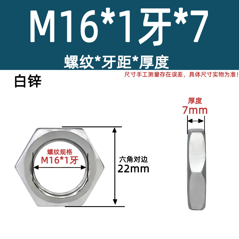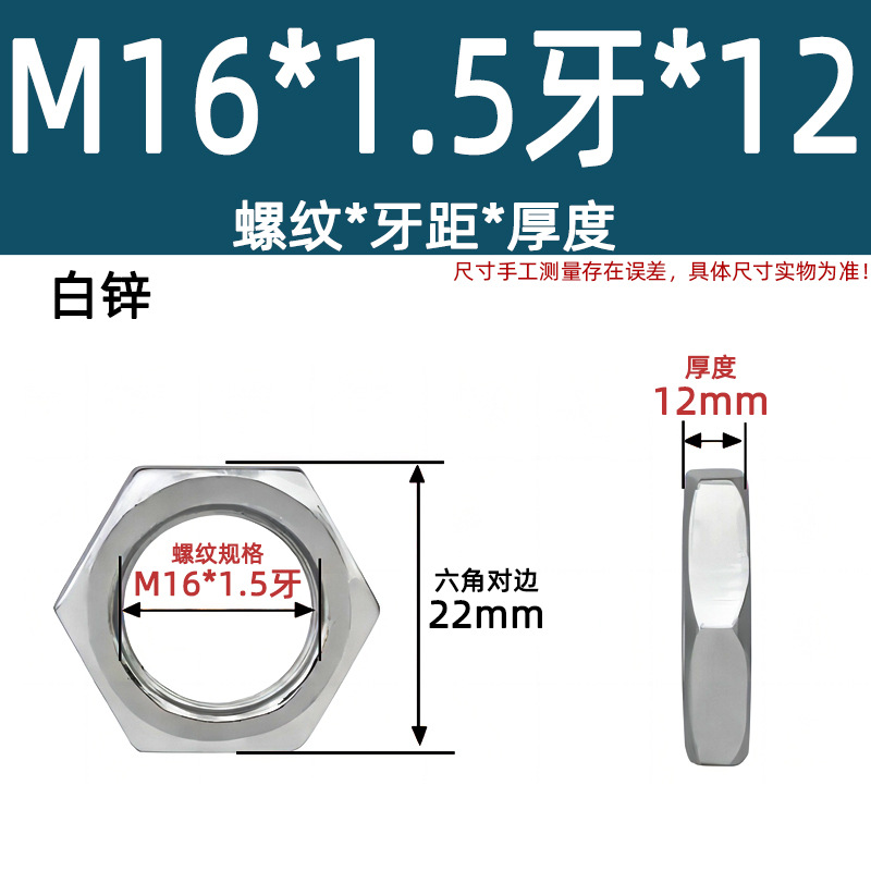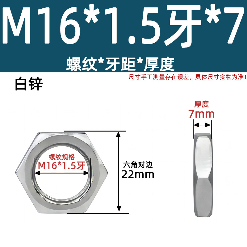 • 육각형 너트 미세 치아 M16 * 1.5*7 색 아연