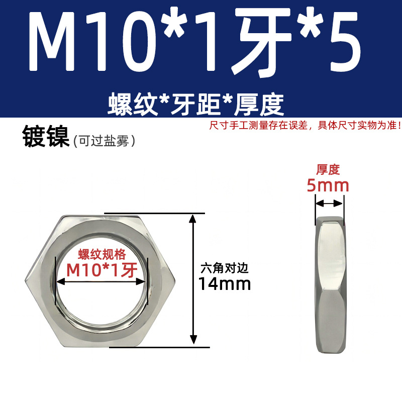 • 육각형 너트 미세 치아 M10 * 1*5 니켈 도금 (소금 스프레이를 통과 할 수 있음)