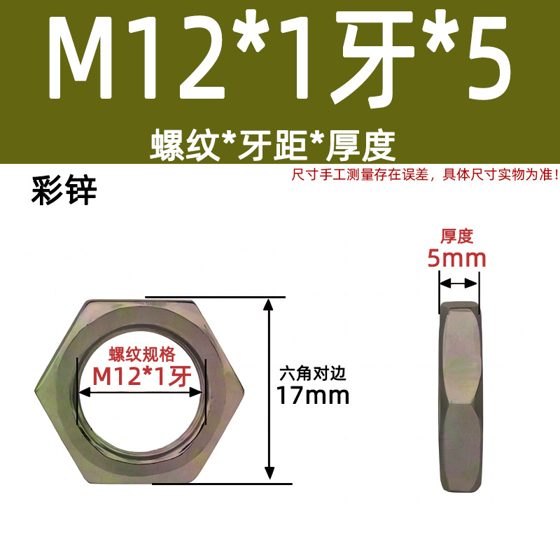 • 육각형 너트 미세 치아 M12 * 1*5 색 아연