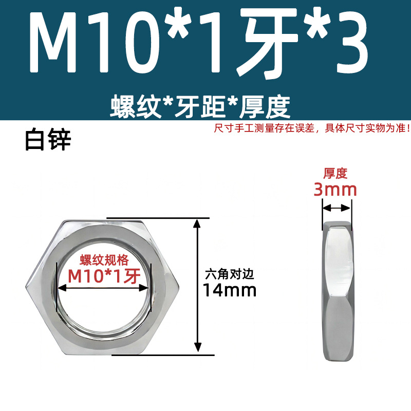 • 육각형 너트 미세 치아 M10 * 1*3 색 아연