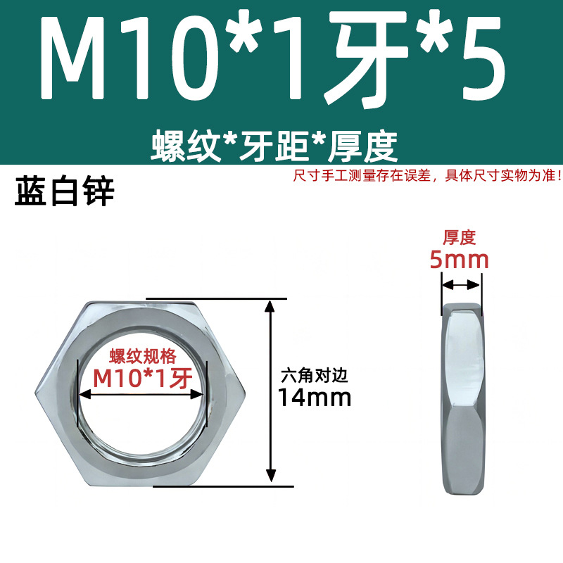 • 육각형 너트 미세 치아 M10 * 1*5 파란색과 흰색 아연 (소금 스프레이를 통과 할 수 있음)
