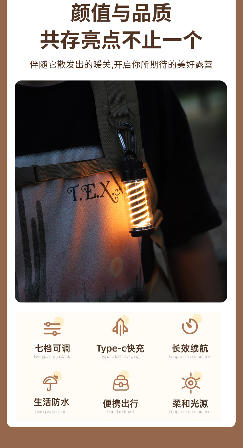야외 휴대용 조명 긴 내구성 분위기 캠핑 LED 조명 충전 텐트 캠프 캐노피 캠핑 교수형 조명