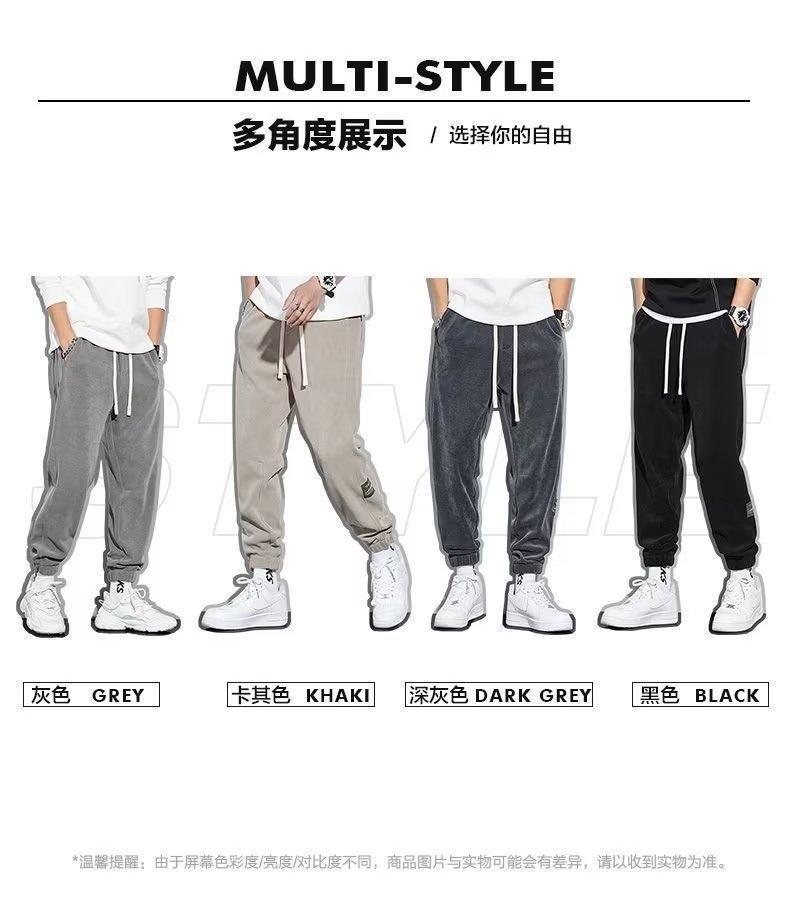 캐주얼 바지 남자의 기모 두꺼운 다리 느슨한 편안한 2023 가을 신상품 남자의 가을과 겨울 유행 브랜드 스포츠 바지스토어 가기