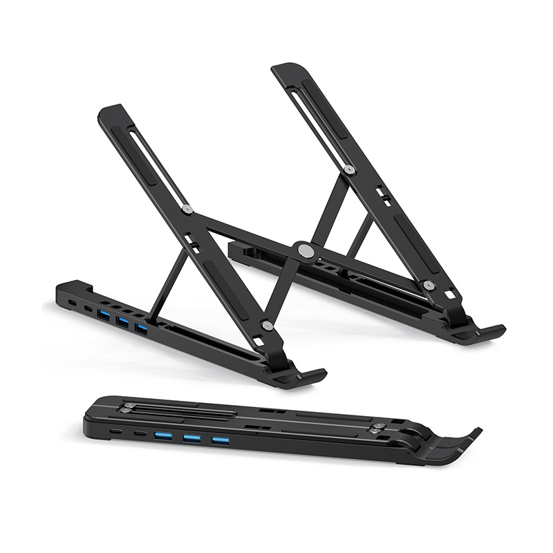 2025 신제품 HUB 노트북 스탠드 6단 4-in-1 도킹 스테이션 접이식 냉각 및 높이 조절 컴퓨터 스탠드