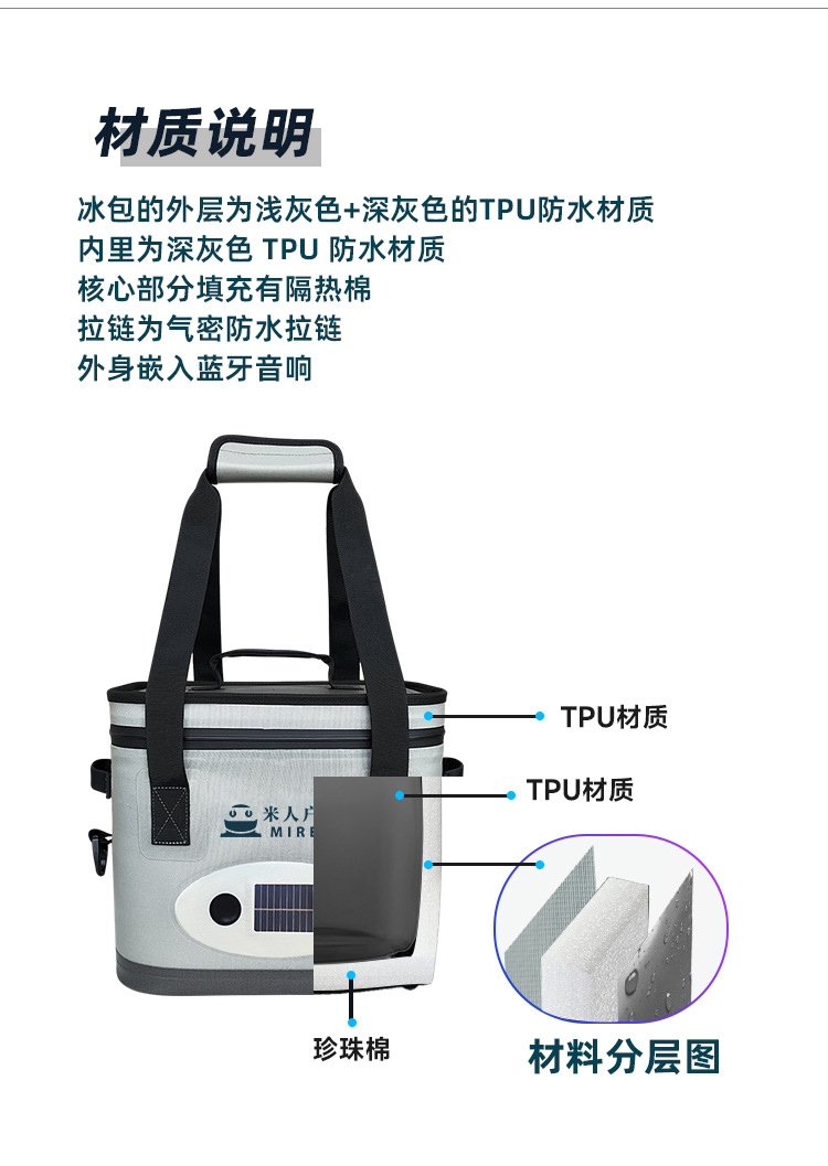 미렌 야외 블루투스 오디오 휴대용 캠핑 피크닉 절연 가방 새로운 방수 TPU 아이스 백