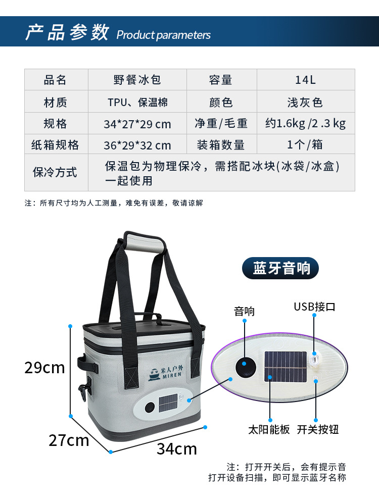 미렌 야외 블루투스 오디오 휴대용 캠핑 피크닉 절연 가방 새로운 방수 TPU 아이스 백스토어 가기