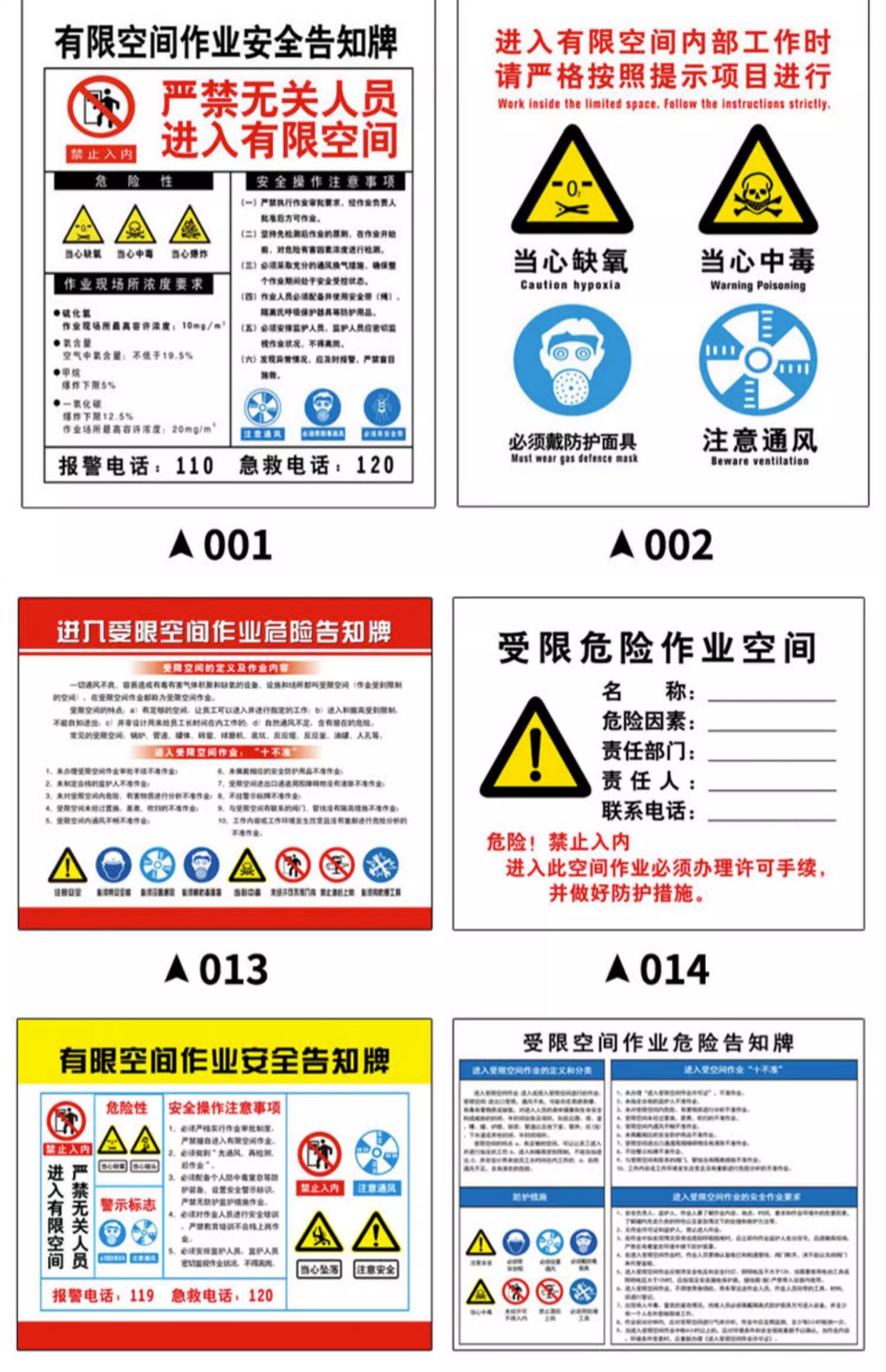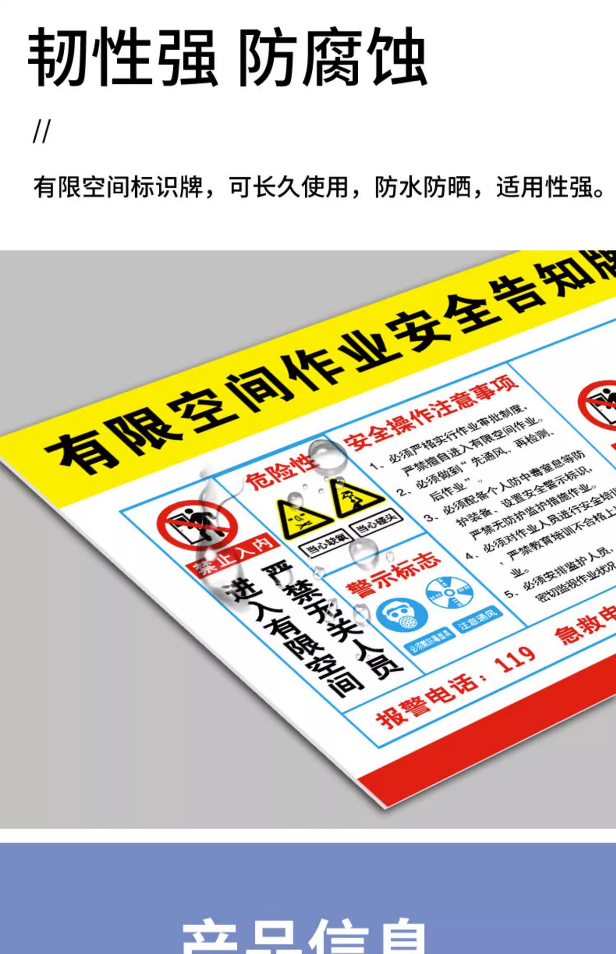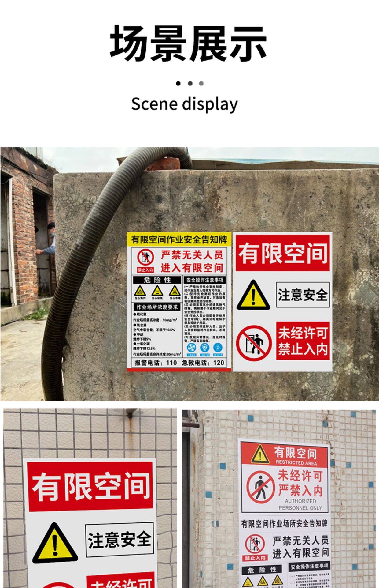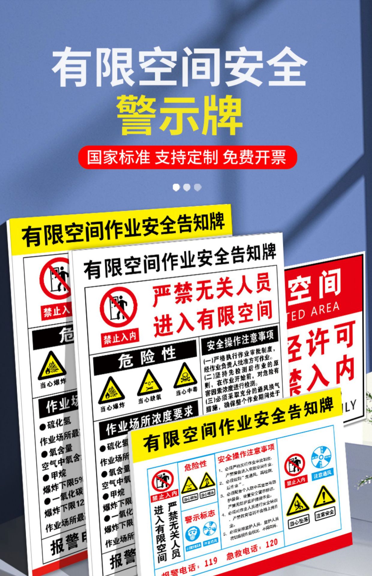 有限空间作业安全告知牌 受限作业贴纸警示牌风险冷库警告标示牌