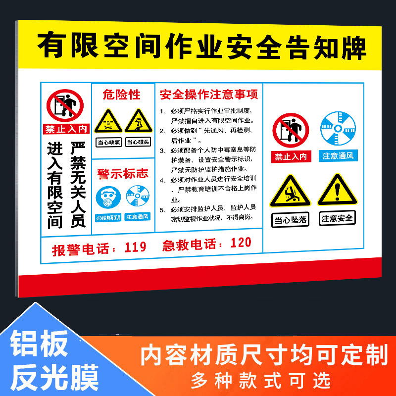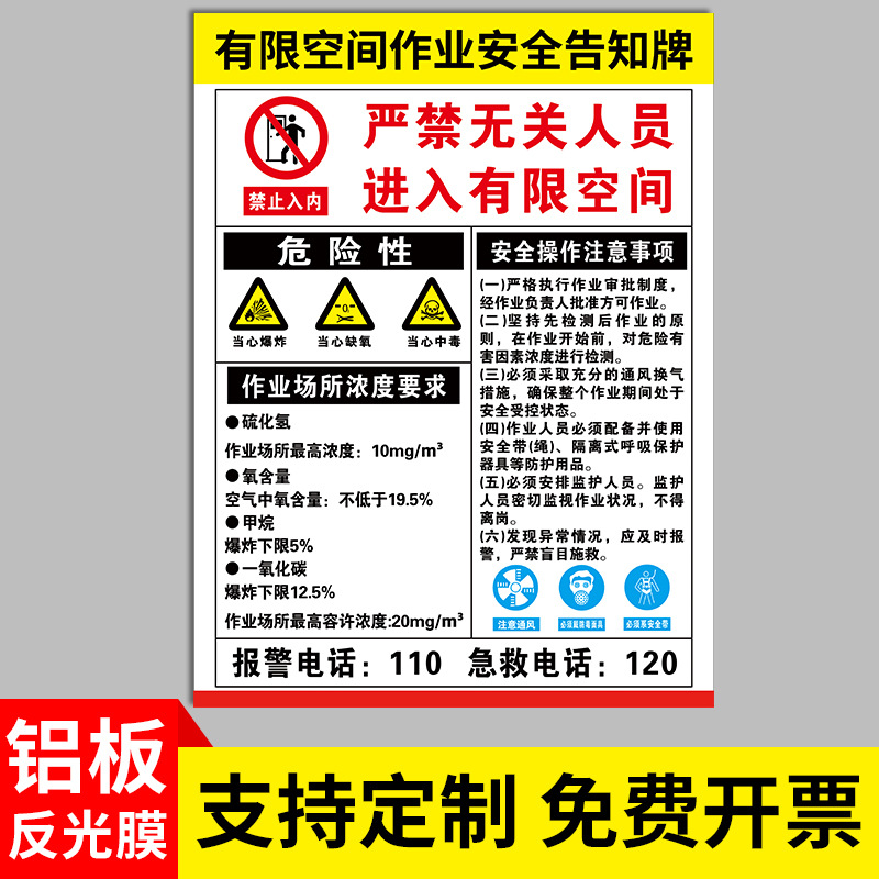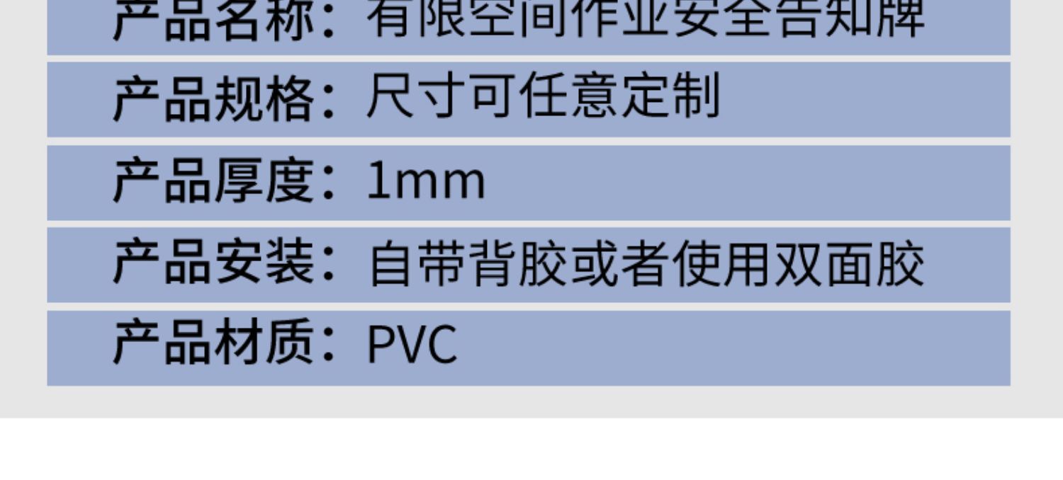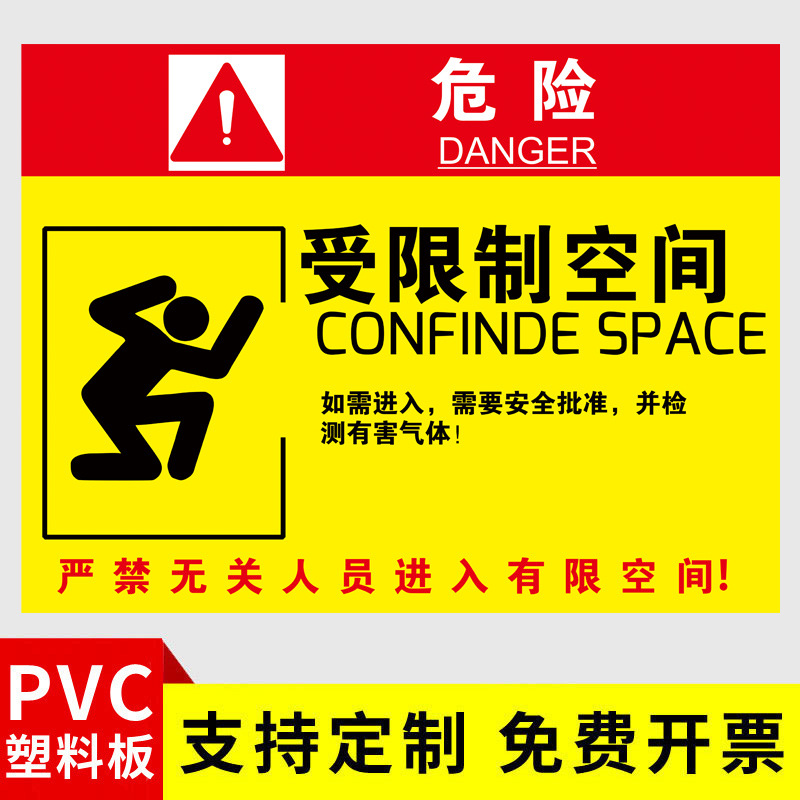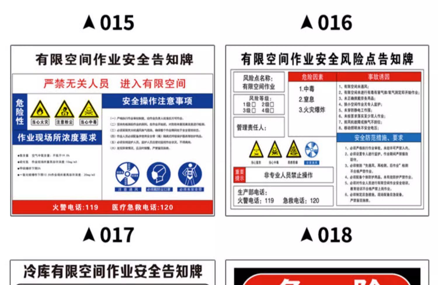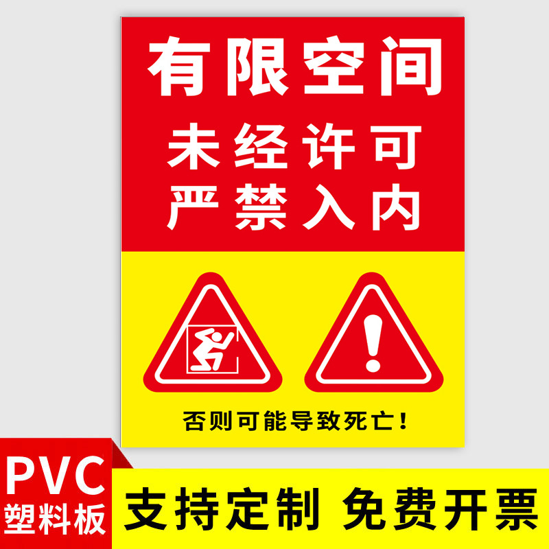 有限空间作业安全告知牌 受限作业贴纸警示牌风险冷库警告标示牌