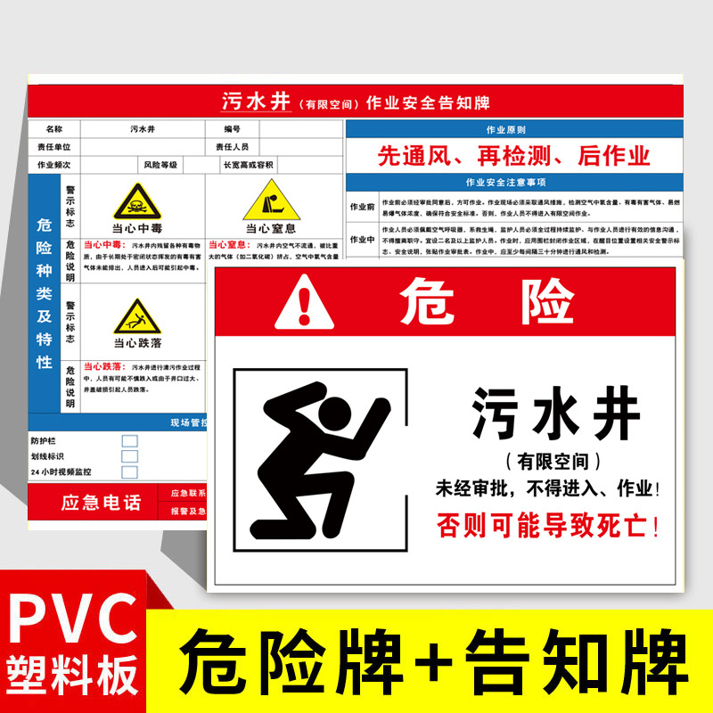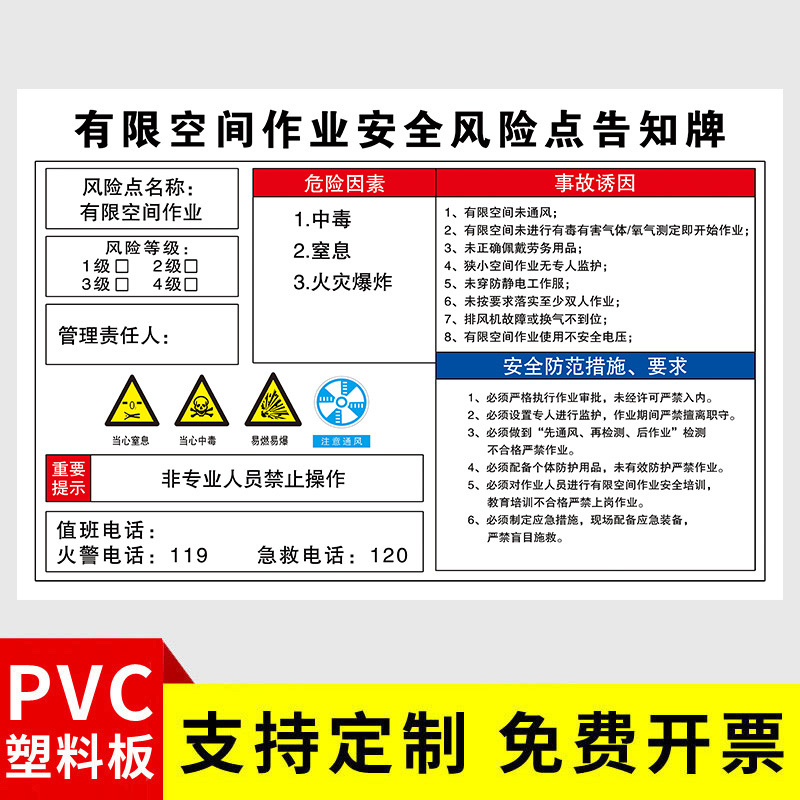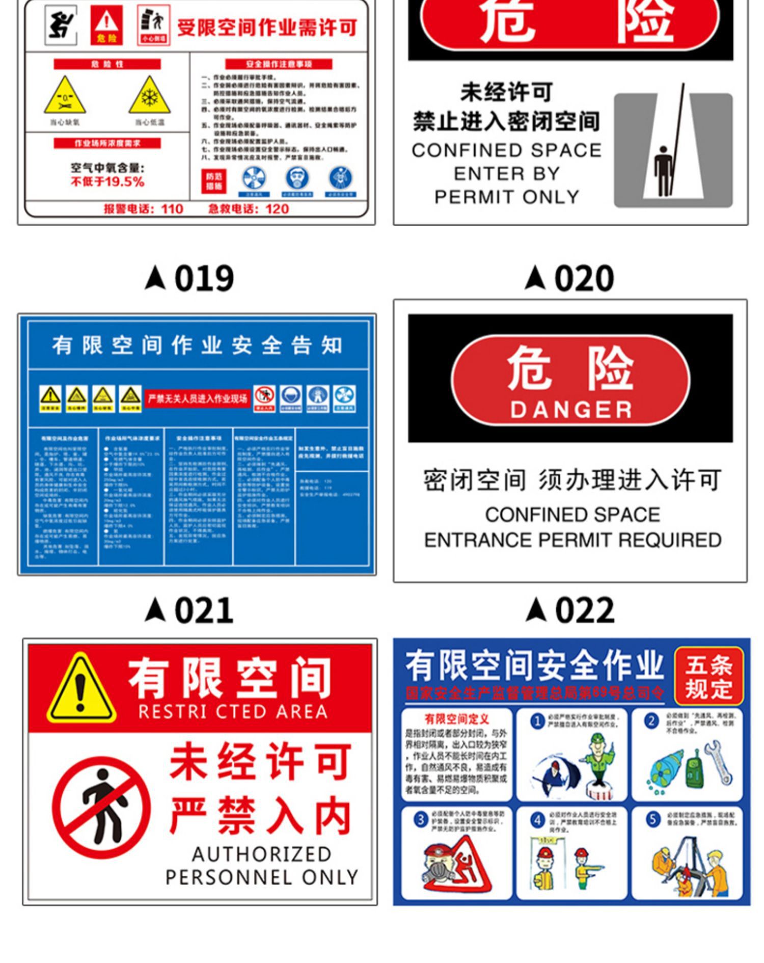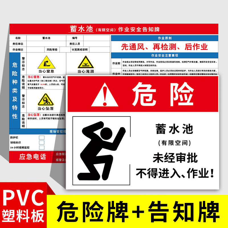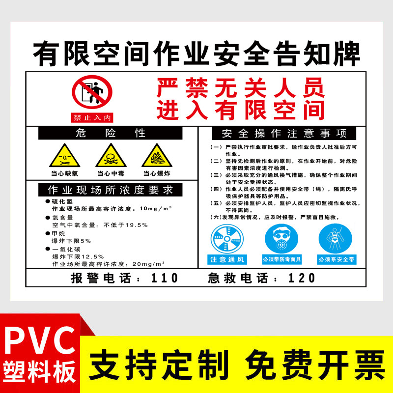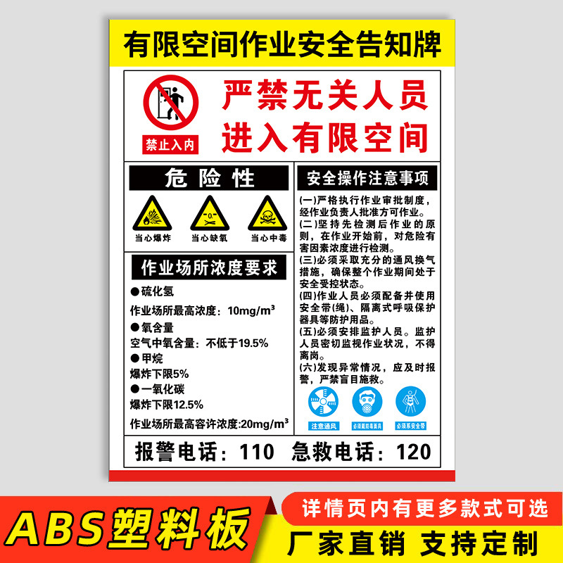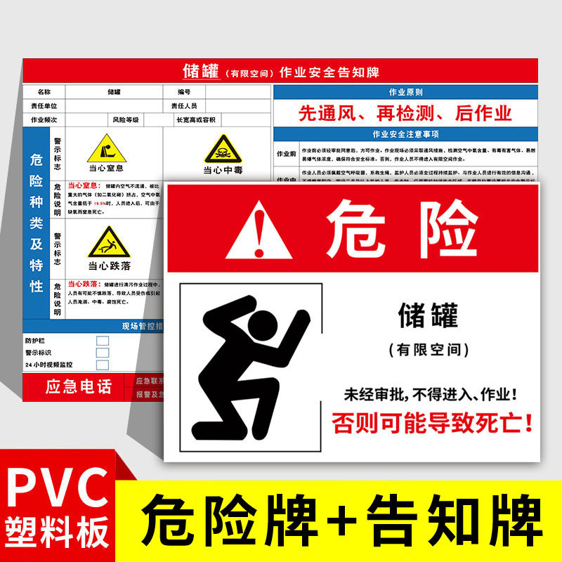 有限空间作业安全告知牌 受限作业贴纸警示牌风险冷库警告标示牌