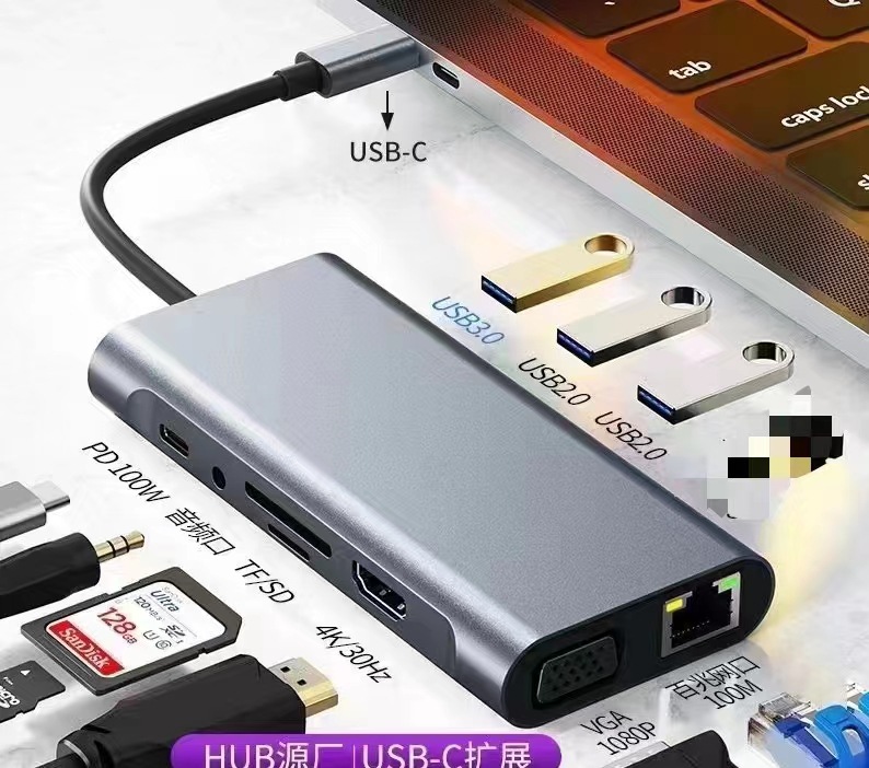 유형 C 확장 도크 8 대 1 다기능 도킹 스테이션 노트북 usbhub 익스텐더 허브