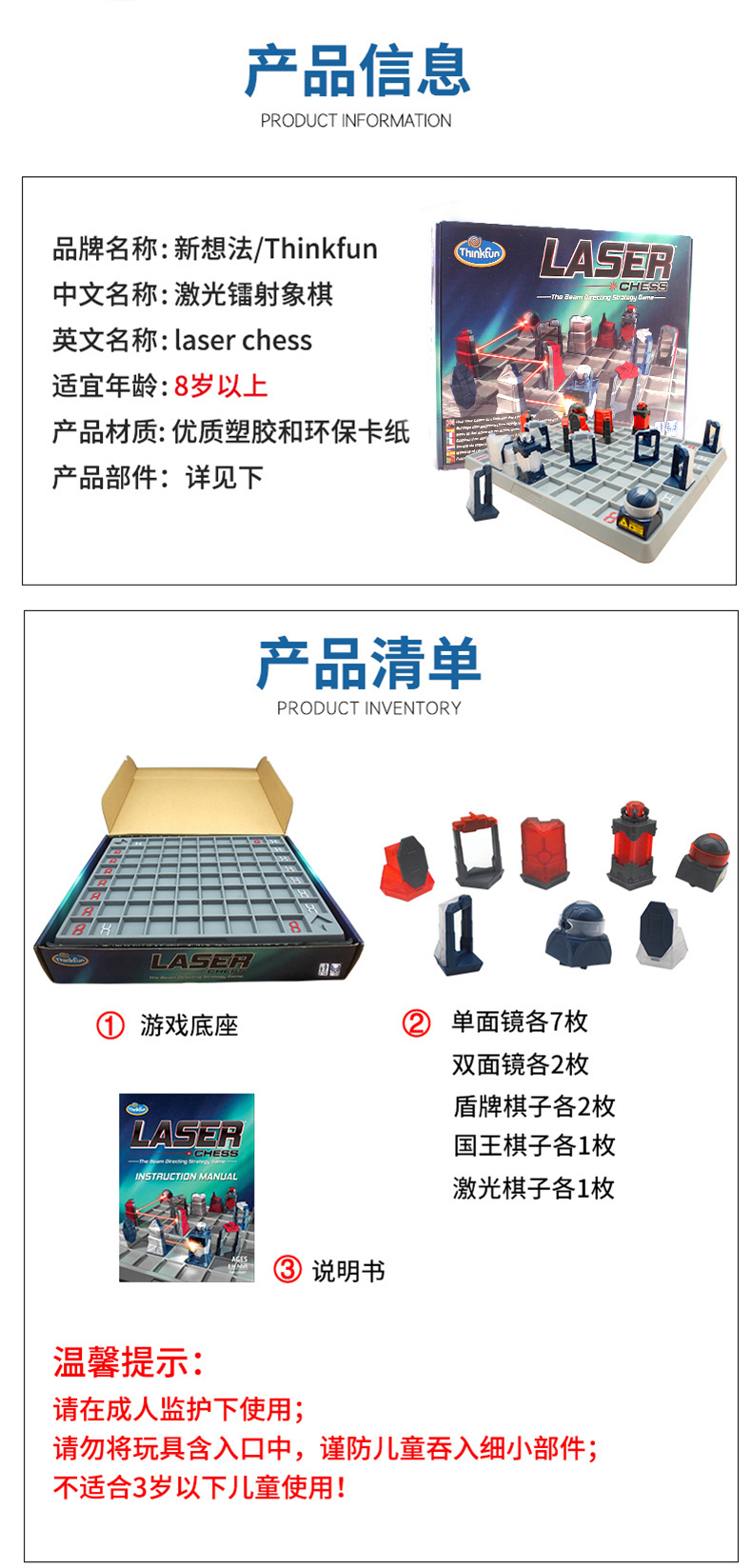 American ThinkFun 레이저 체스 레이저 어린이 사고 퍼즐 보드 게임 더블 PK 장난감 부모-자식 상호 작용스토어 가기