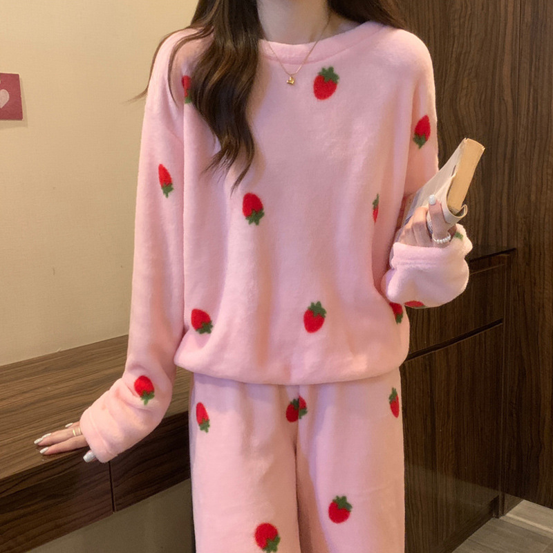 겨울 산호 양털 잠옷 여자의 기모 두꺼운 느슨한 겉옷을 입고 긴 소매 따뜻한 세트 달콤한 부모-자식 가정 옷스토어 가기
