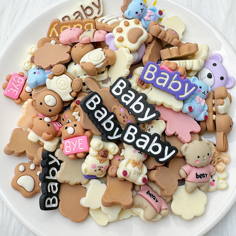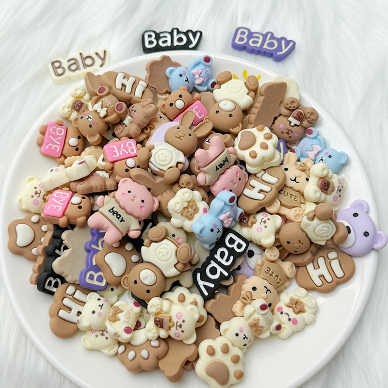 만화 다크 브라운 시리즈 활 소녀 수지 액세서리 크림 접착제 전화 케이스 헤어 액세서리 DIY 재료 가방스토어 가기