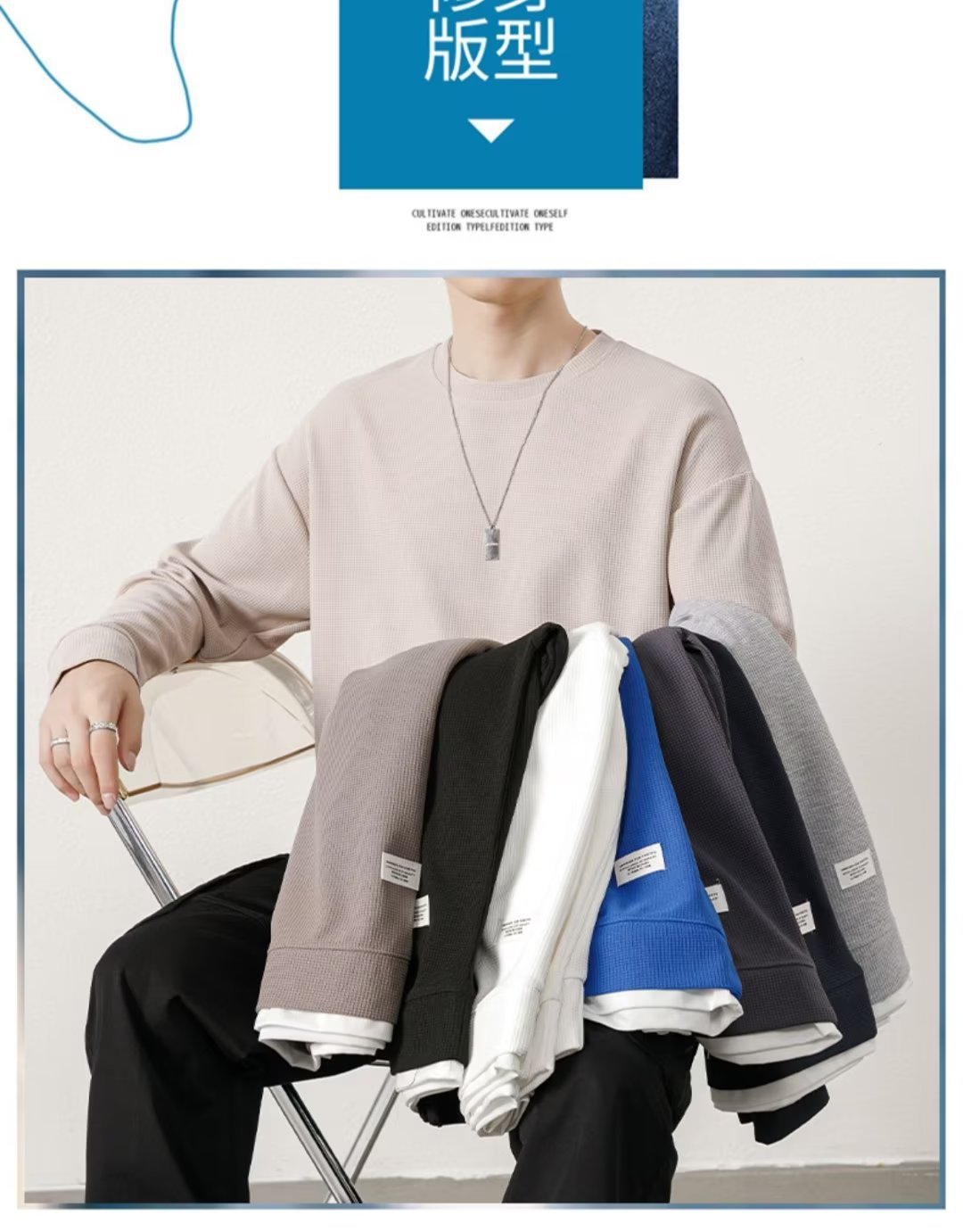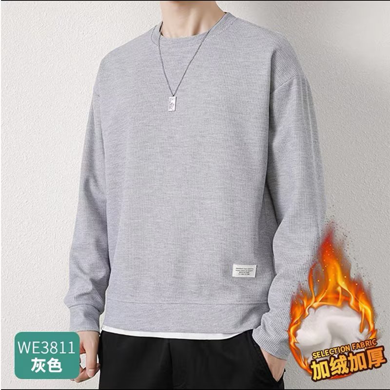 와플 캐주얼 세트 남자의 겨울 기모 두꺼운 청소년 플러스 사이즈 느슨한 남자의 스포츠 스웨터 바지스토어 가기