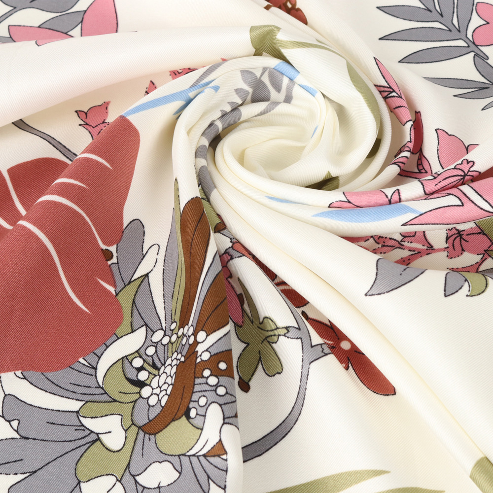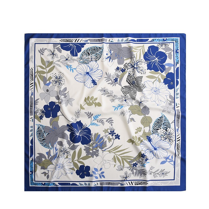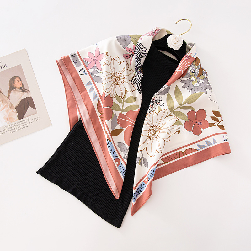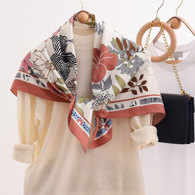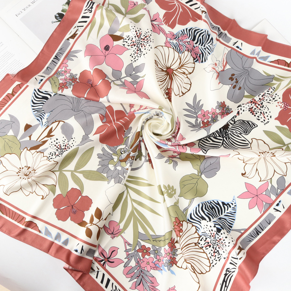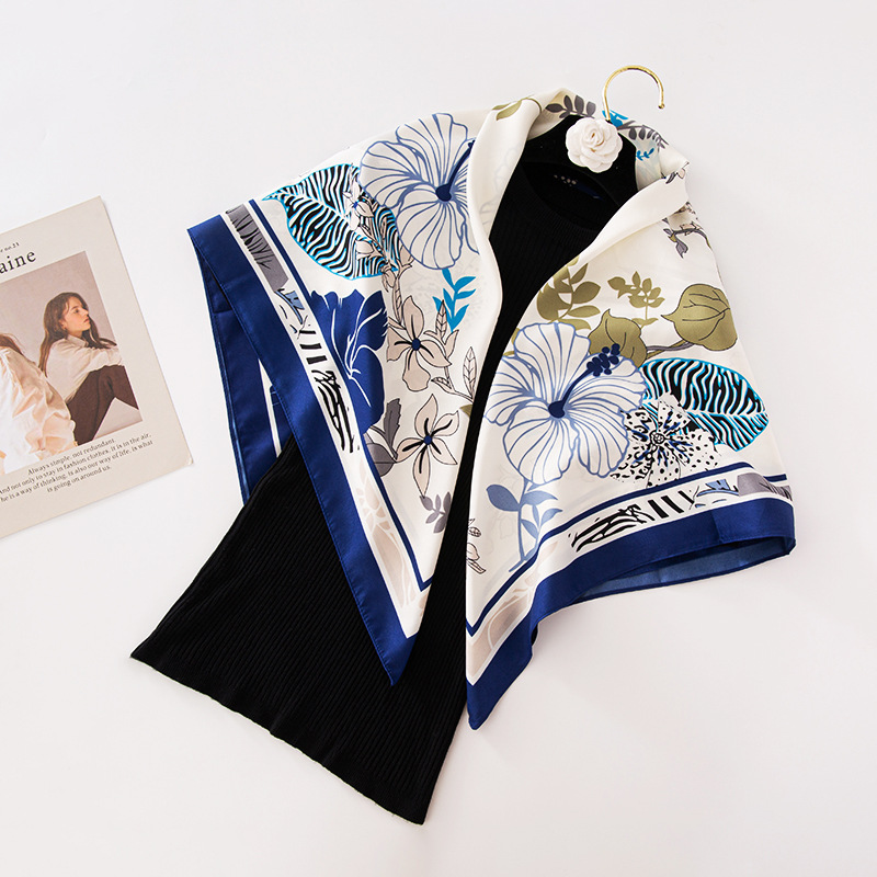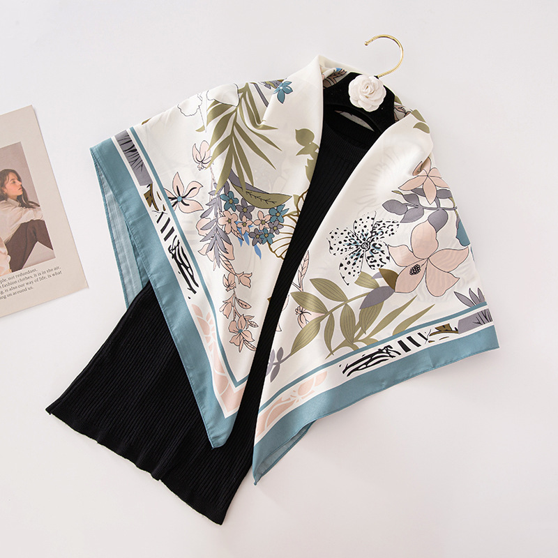 항저우 실크 식물 인쇄 실크 스카프 여성용 봄과 여름 90cm 자외선 차단제 숄 능 직물 새틴 스퀘어 스카프