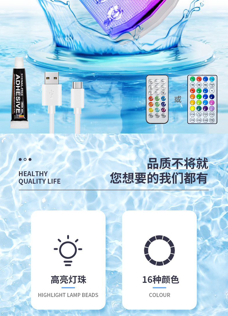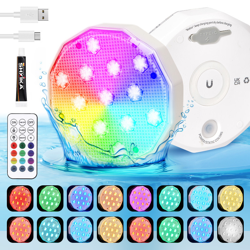 新款充电泳池灯led水下灯水池灯鱼缸灯遥控潜水灯七彩变色