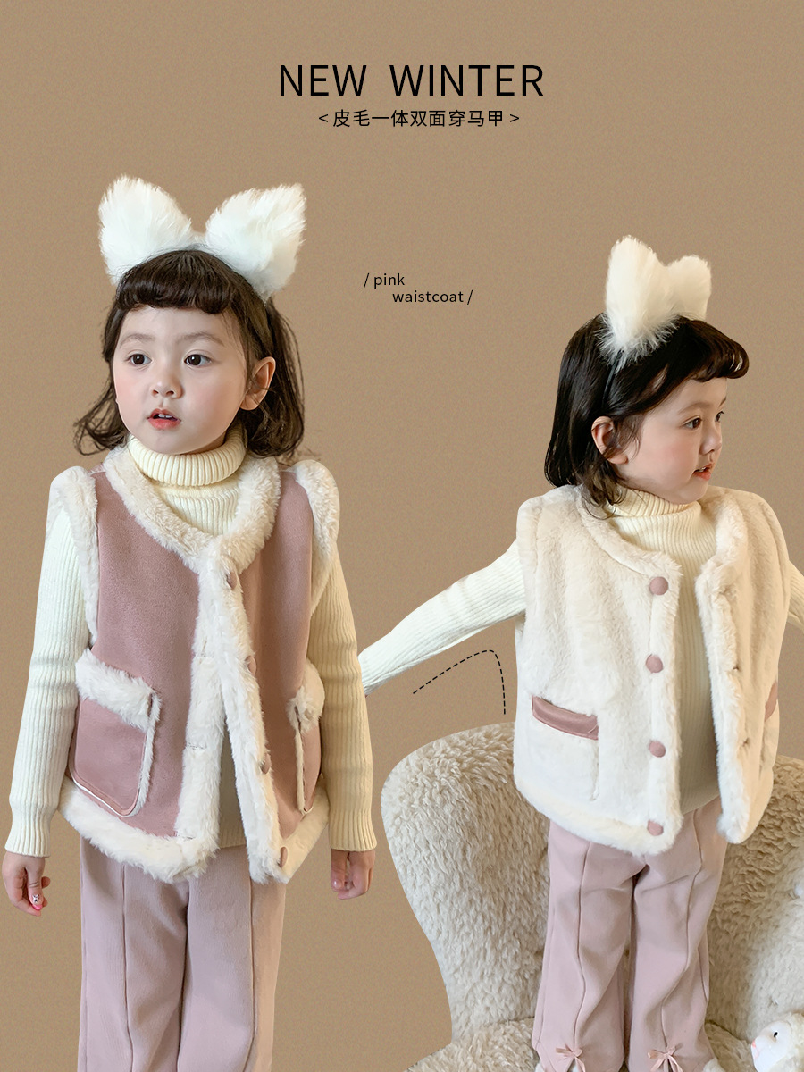 Weimu 아동 의류 소녀 모피 원피스 조끼 가을, 겨울 새로운 어린이 가역 조끼 탑 아기 소녀 옷