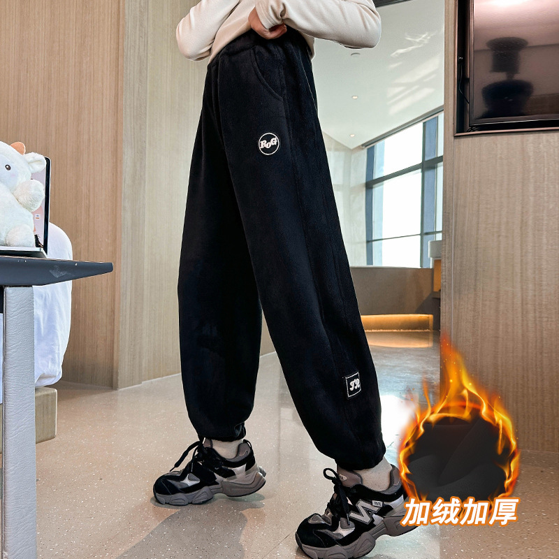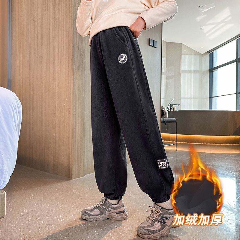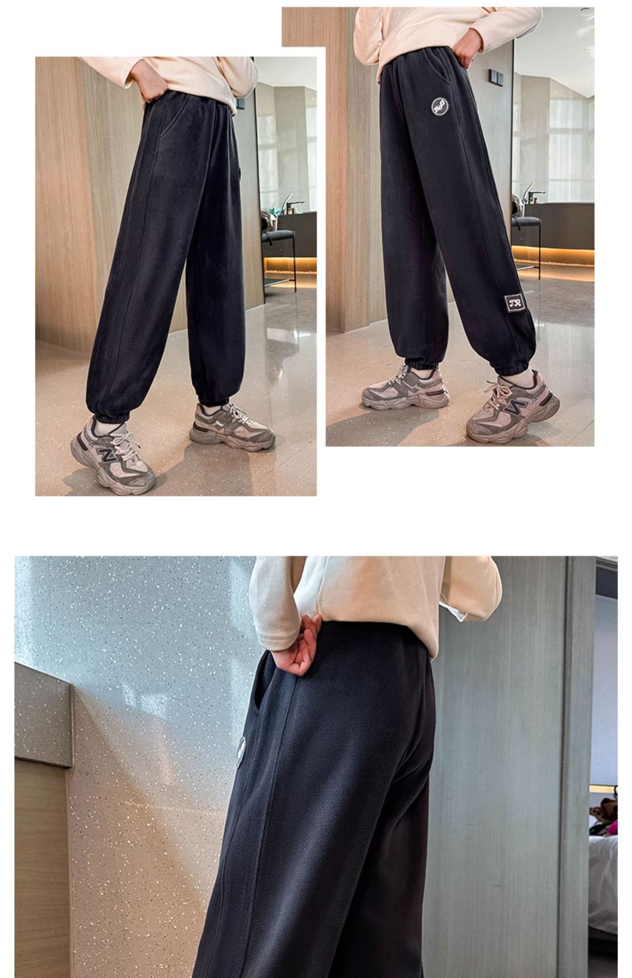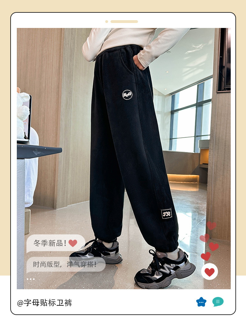 여아 벨벳 안감 팬츠 가을 겨울 2023 신작 아동 겨울 착용 두꺼운 면 바지 여성용 빅 아동용 원피스 벨벳 스포츠 팬츠