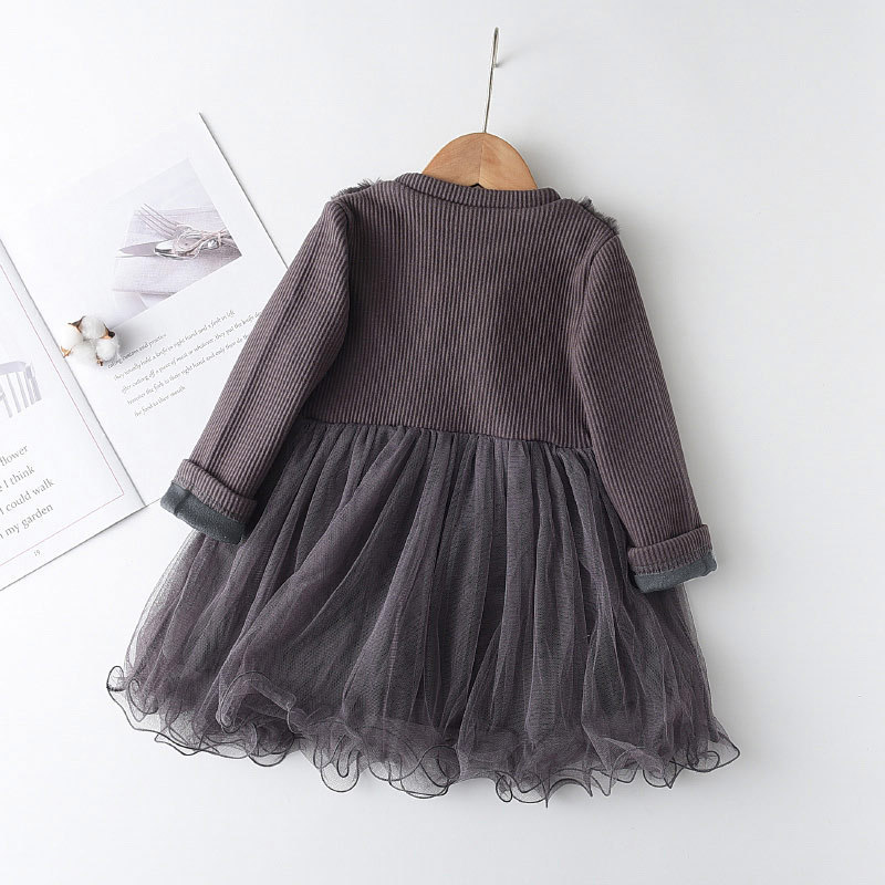 여아용 세련된 투피스 스타일 모조 밍크 벨벳 공주 망사 스커트 조끼 겨울 여아 아기 공주 플러스 벨벳 원피스