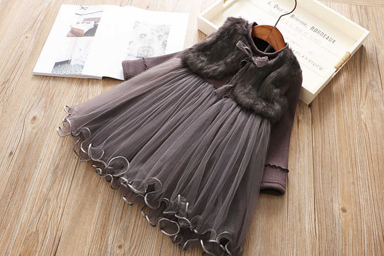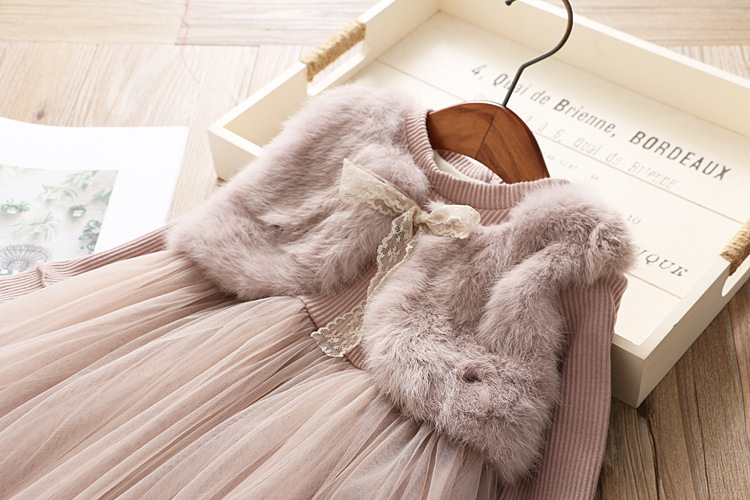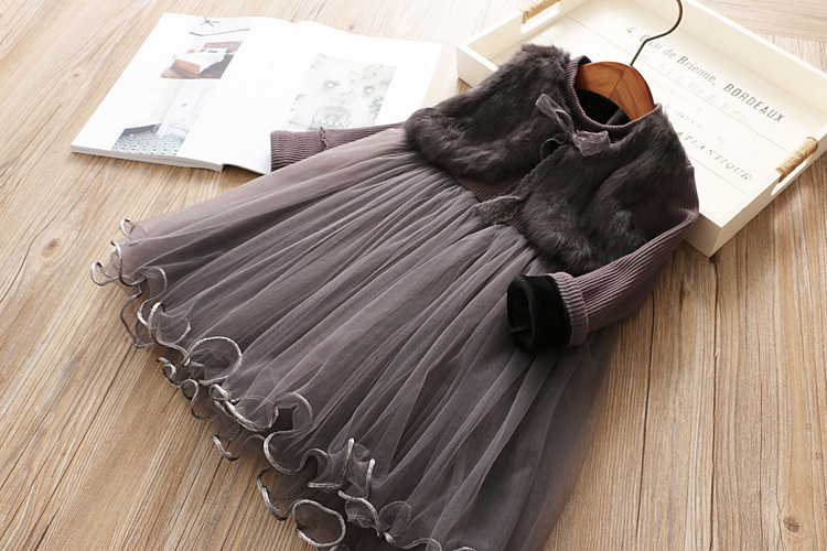 여아용 세련된 투피스 스타일 모조 밍크 벨벳 공주 망사 스커트 조끼 겨울 여아 아기 공주 플러스 벨벳 원피스스토어 가기