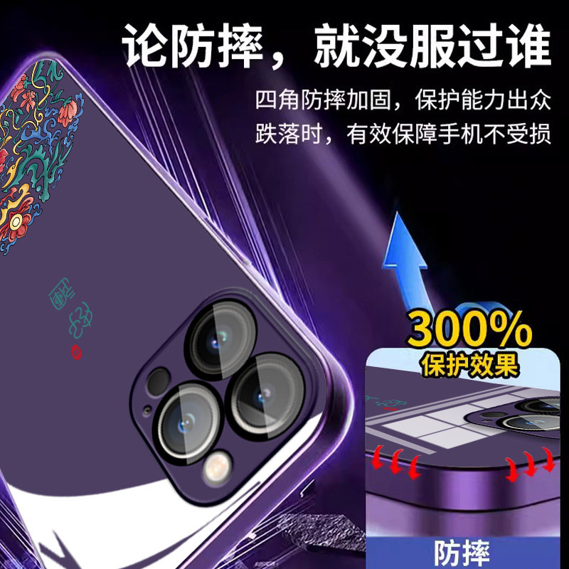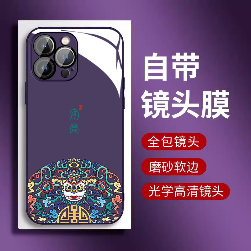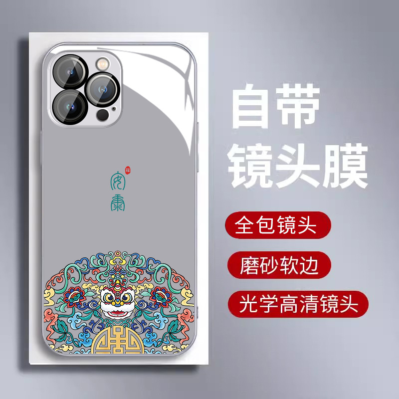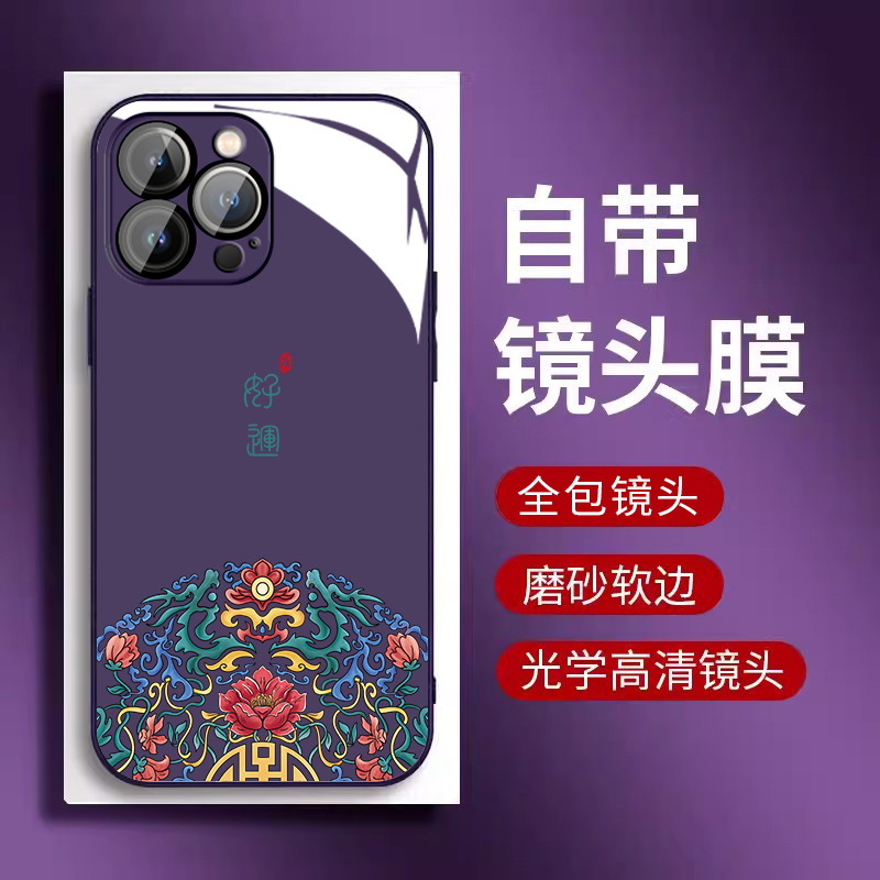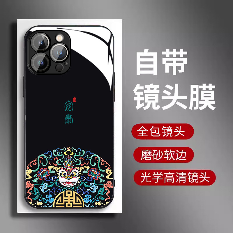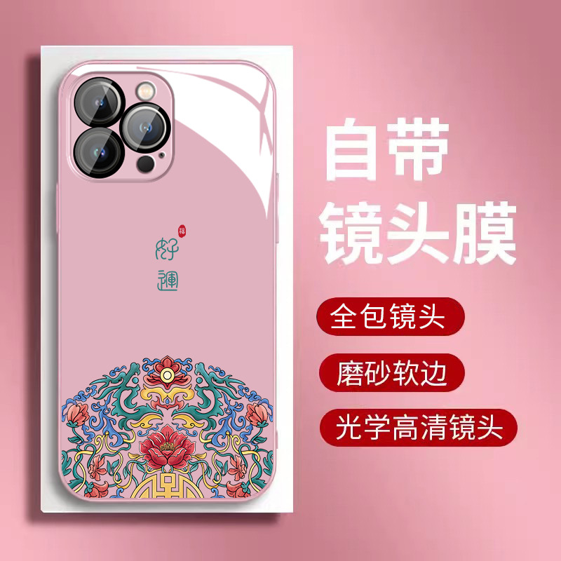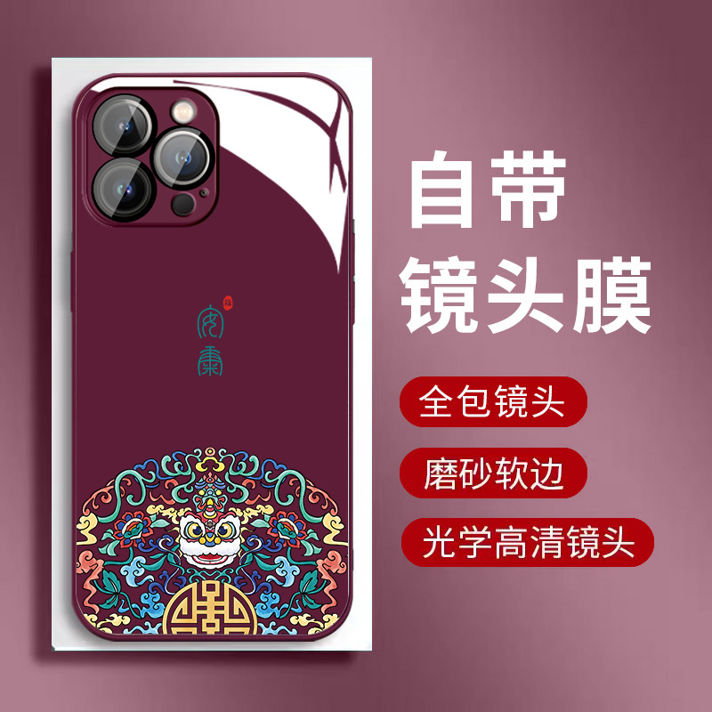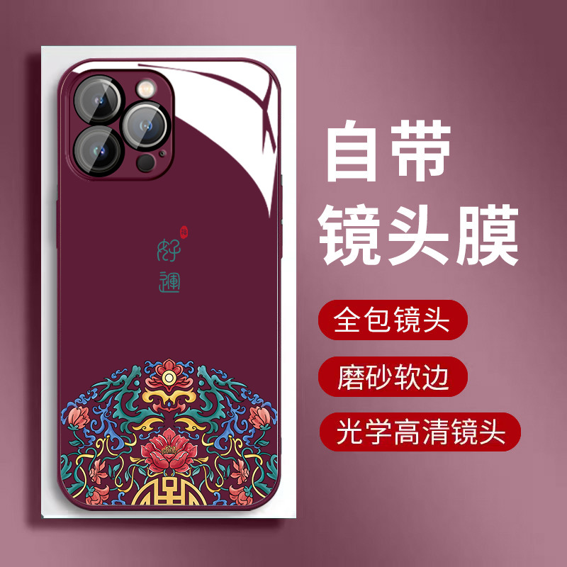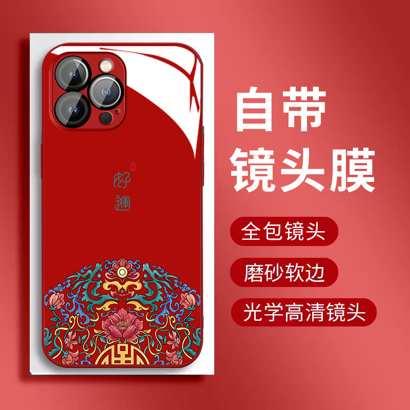 Apple 15Promax 휴대 전화 케이스 고급 유리 IP13 렌즈가있는 새로운 14 에 대한 중국 스타일 행운