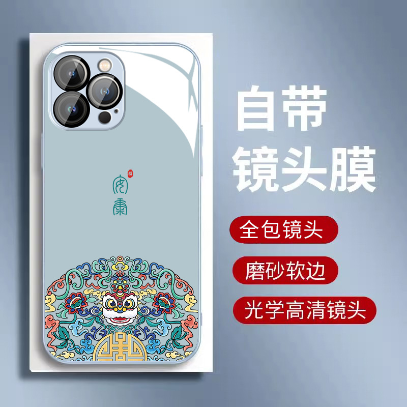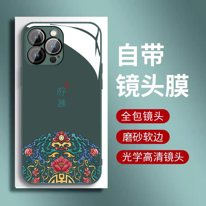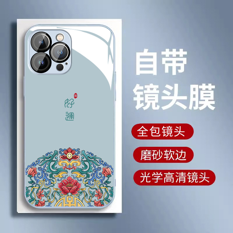 Apple 15Promax 휴대 전화 케이스 고급 유리 IP13 렌즈가있는 새로운 14 에 대한 중국 스타일 행운스토어 가기