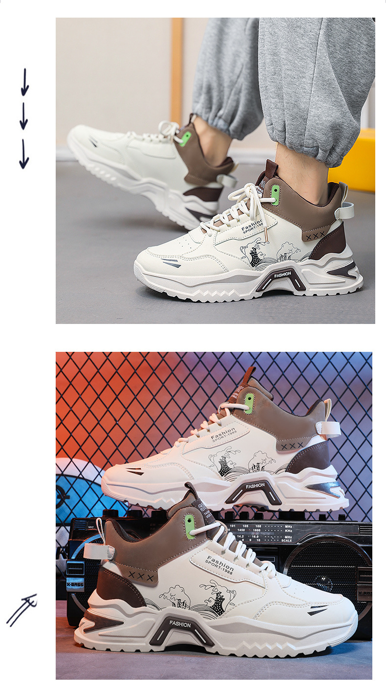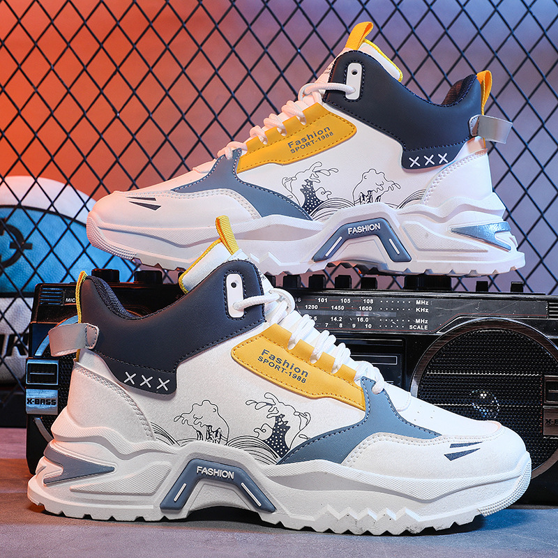 아마존 크로스 보더 하이탑 남성 신발 가을 2023 새로운 스포츠 캐주얼 남성용 두꺼운 바닥 트렌디 신발 모든 매치 토레 신발스토어 가기