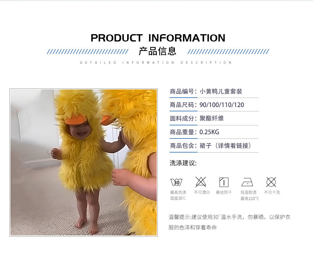 유럽과 미국 국경 간 핫 할로윈 어린이 공연 의류 작은 노란 오리 후드 조끼 휴일 파티 롤 플레잉 의류