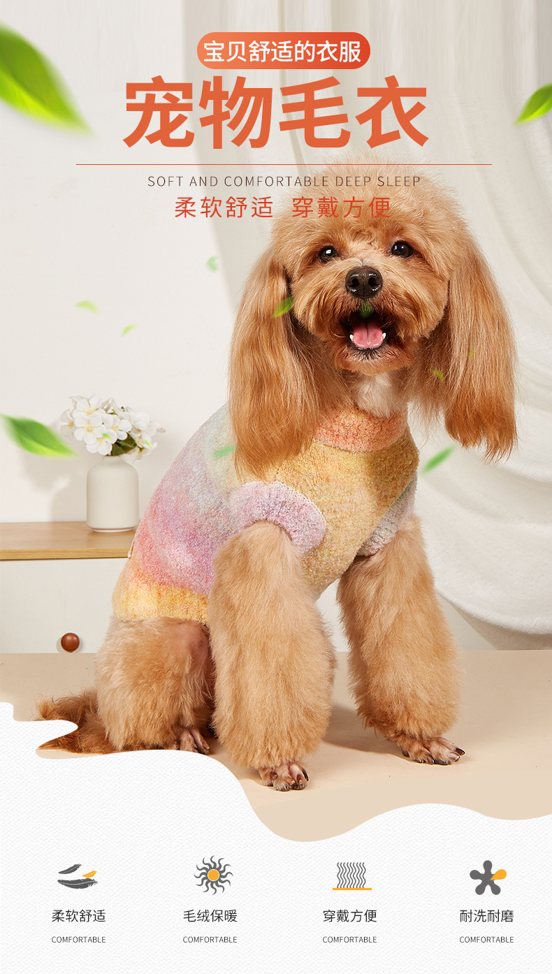 Wantalk 소프트 왁스 레인보우 링 도파민 애완 동물 스웨터 슈퍼 탄성 따뜻한 강아지 두 다리 스웨터