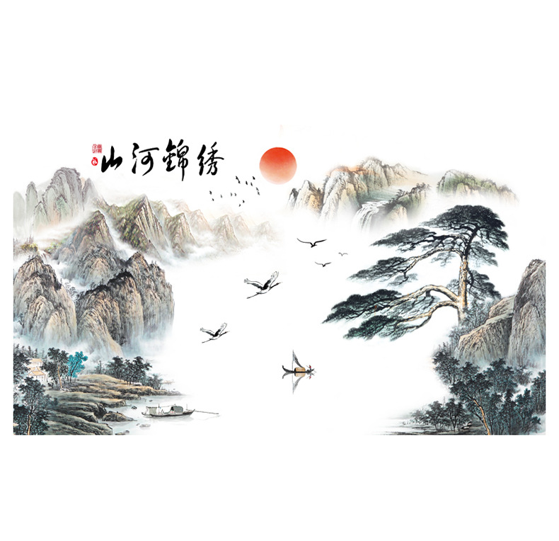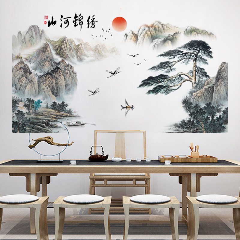 Huizhicai 벽 스티커 CH69095 화려한 고대 스타일 풍경 그림 홈 룸 배경 벽 미화 장식
