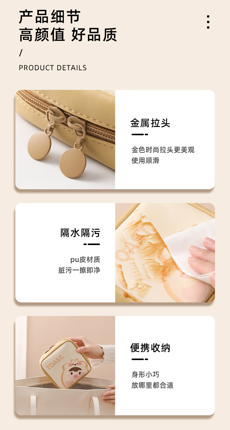 하이 찾고 귀여운 PU 대용량 휴대용 방수 저장 가방 변경 립스틱 헤드폰 안경 저장 가방 도매
